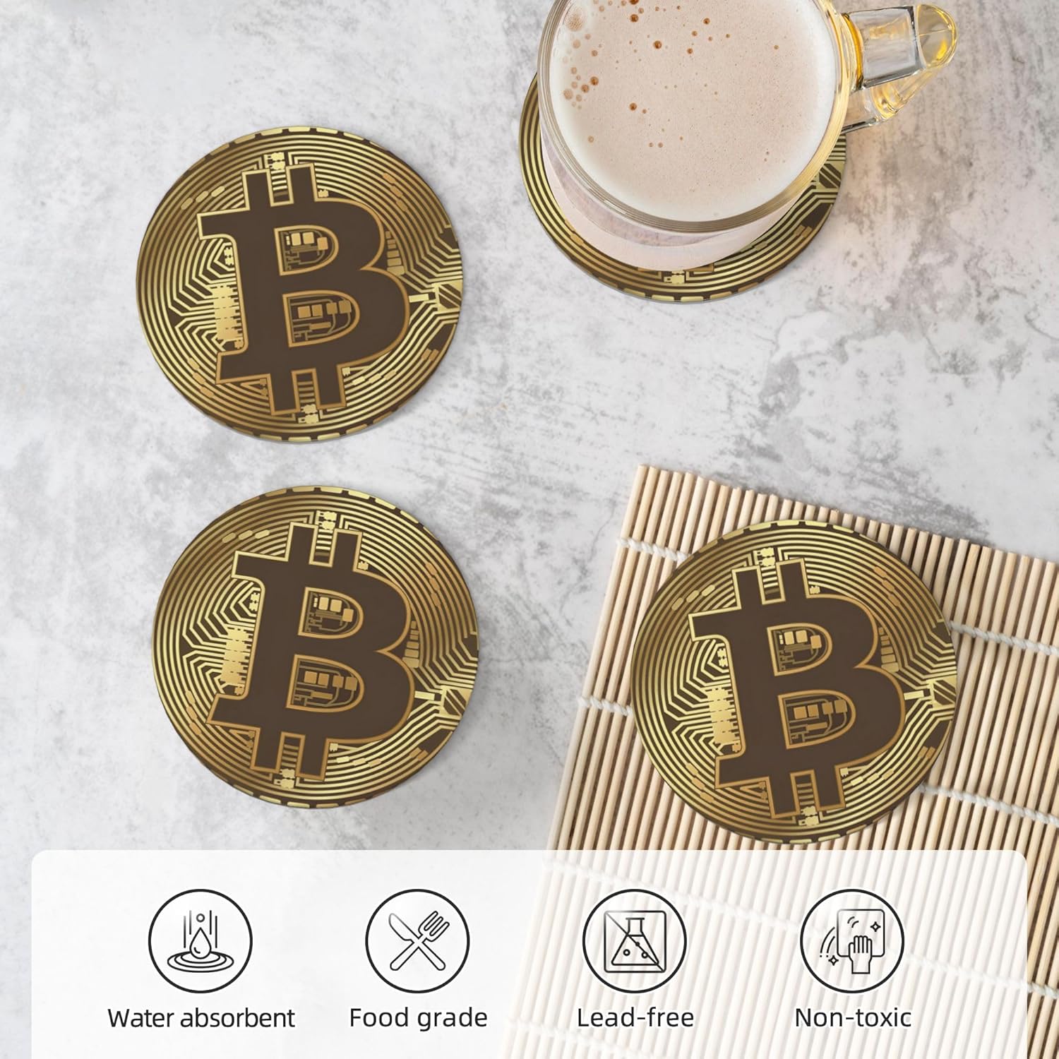 Bitcoin BTC Crypto Currency Coasters for Drinks Set of 4, Absorbent Ceramic Drink Coasters for Coffee Table Wooden Table Cup Bar, 4 Inches
