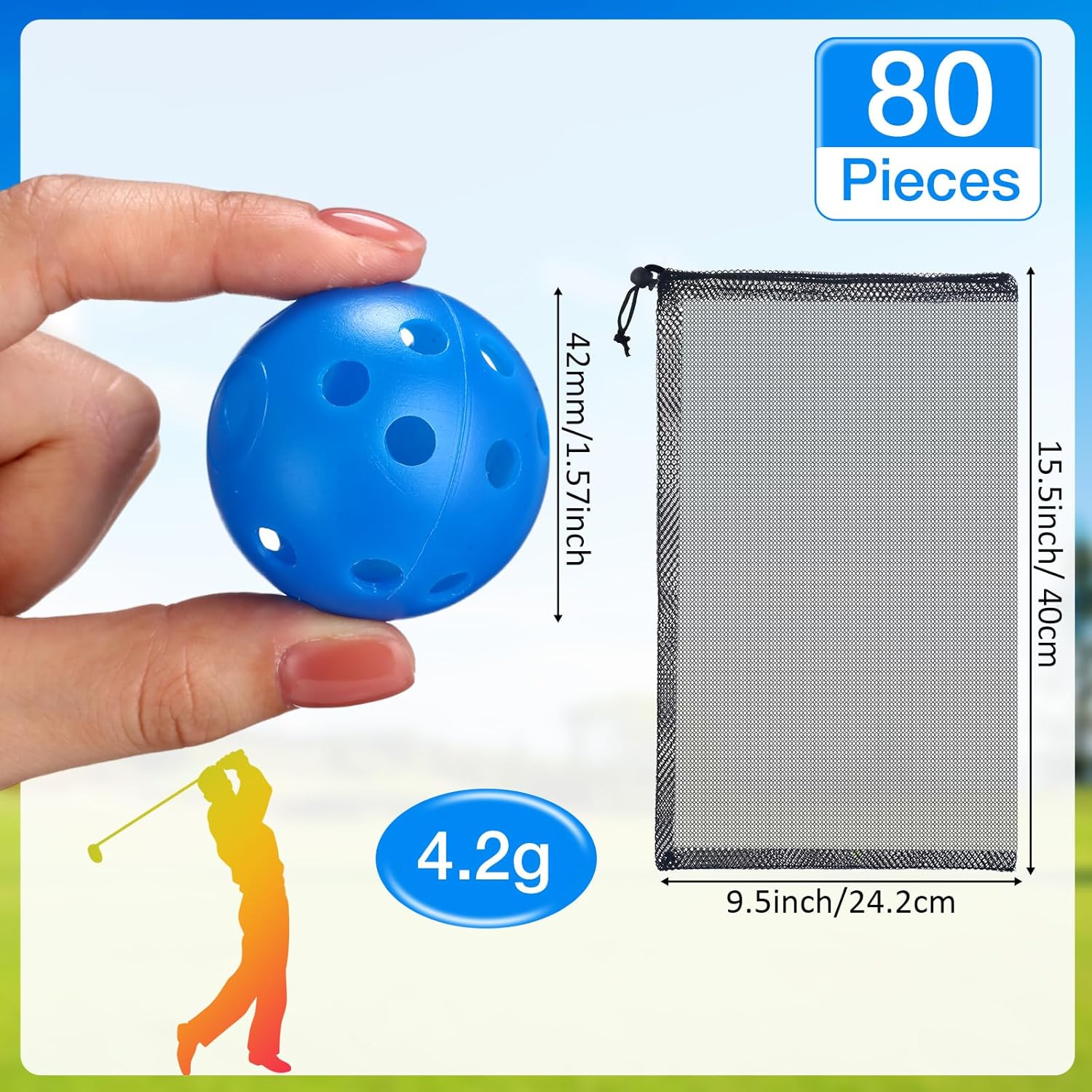 80 Pack Practice Golf Balls Limited Flight 42 mm Golf Training Airflow Hollow Plastic Ball for Women Men Indoor Outdoor Driving Range Swing Practice Home