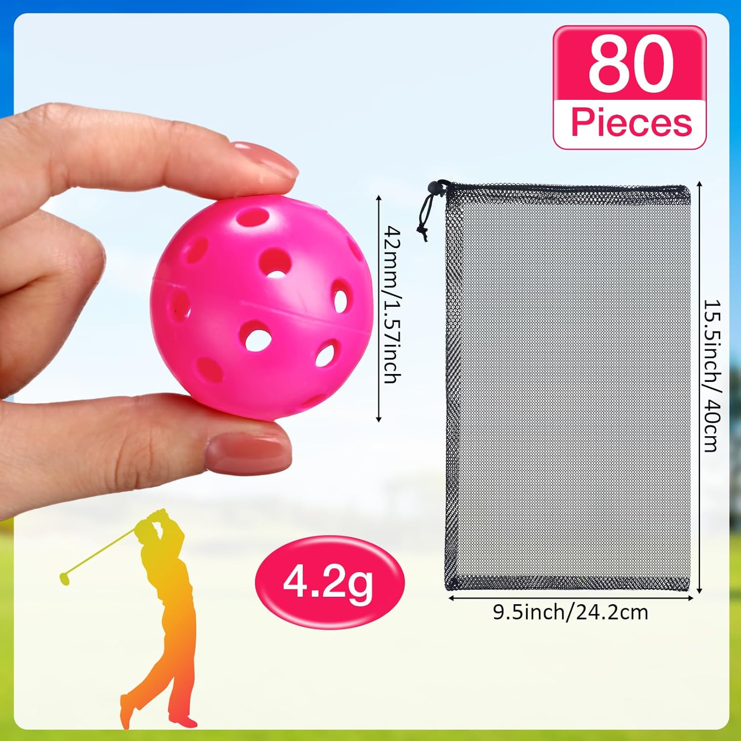 80 Pack Practice Golf Balls Limited Flight 42 mm Golf Training Airflow Hollow Plastic Ball for Women Men Indoor Outdoor Driving Range Swing Practice Home