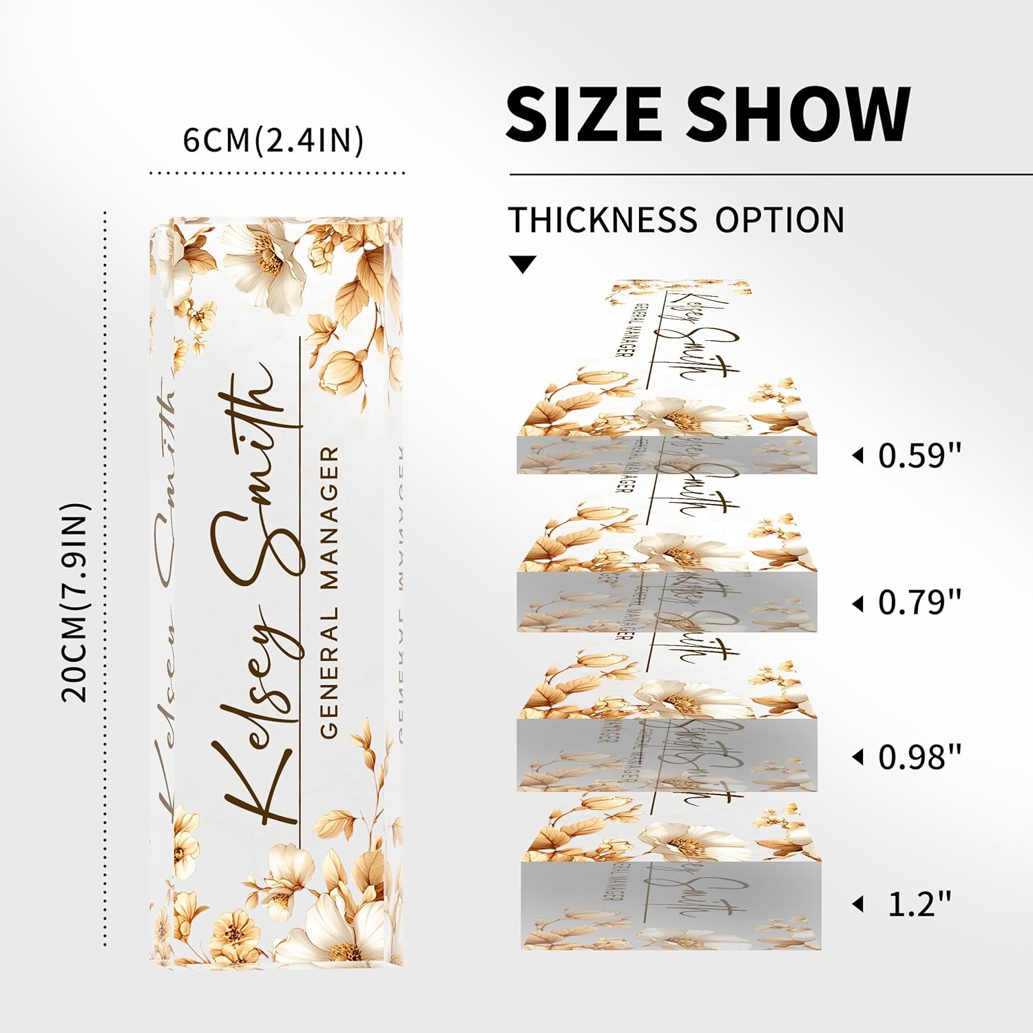 - High Quality Products: This high quality custom desk name plate is made of eco-friendly acrylic material, using the most professional cutting technology, the most advanced HD printing technology and the latest adhesives, which makes the product look beautiful, strong and durable, and the problem of peeling off of the pattern never exists, so please rest assured to buy our name plate for office desk.