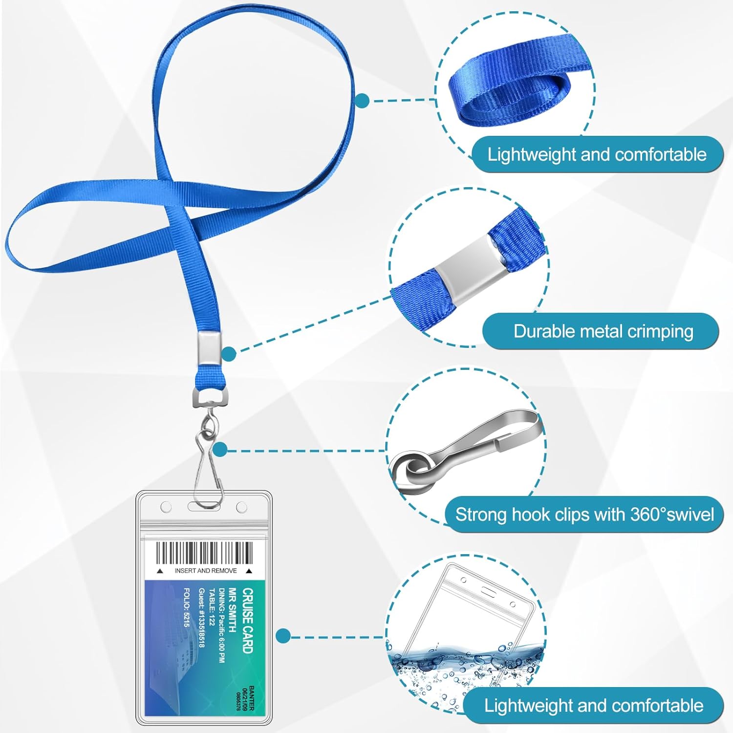 - Affordable Package: 20pcs vertical ID badge holders and 20pcs cruise lanyards, Includes 10 colors available - red, orange, yellow, sky blue, blue, purple, green, gray, navy blue, black. Assorted colors Durable Lanyard meet the needs of various occasions