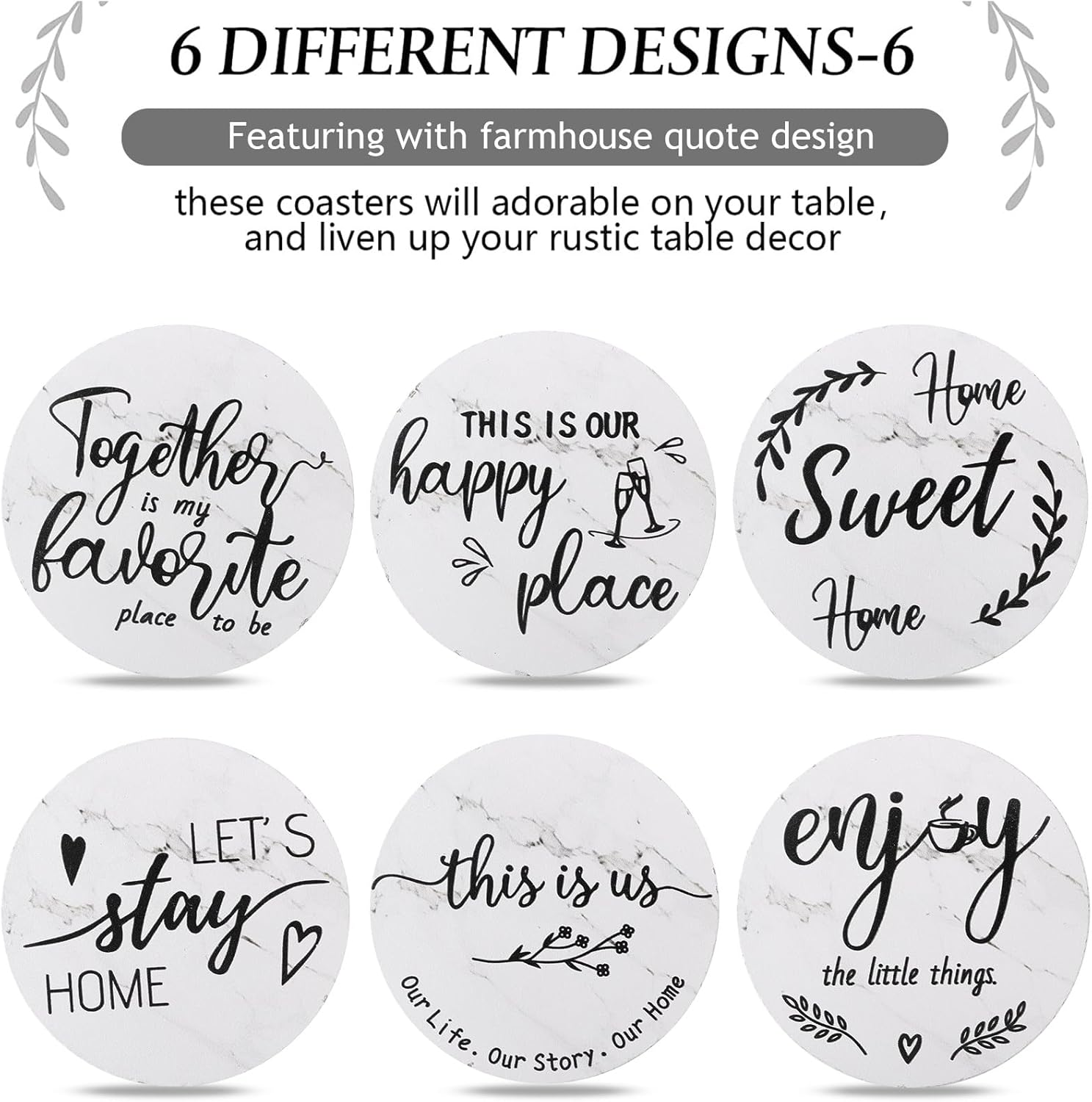 - What You Receive: the package includes 6 pieces of home coasters in 6 styles and a coasters storage box, that the nice combination and enough quantity can meet your use and replacement needs in daily life