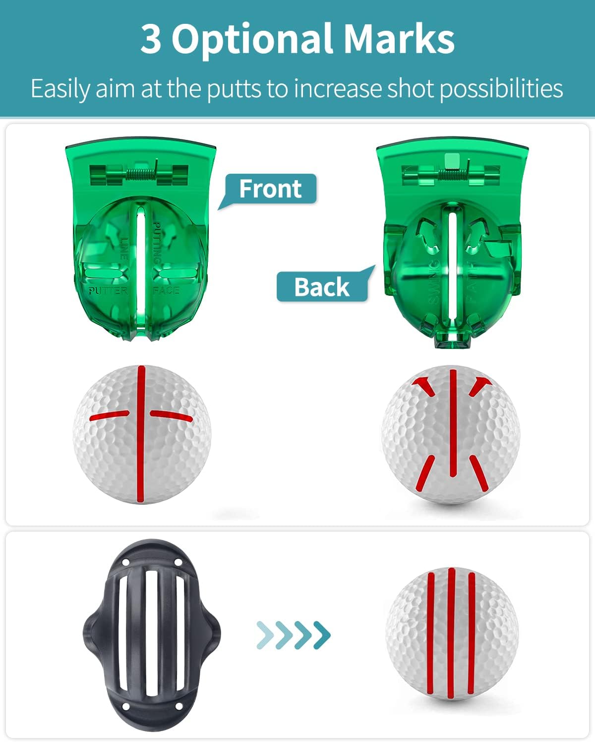 - More Accurate Putt: These linear alignment tools make recognizable marks to help aim at your target accurately and improve your confidence. Greatly increase your shot possibilities.