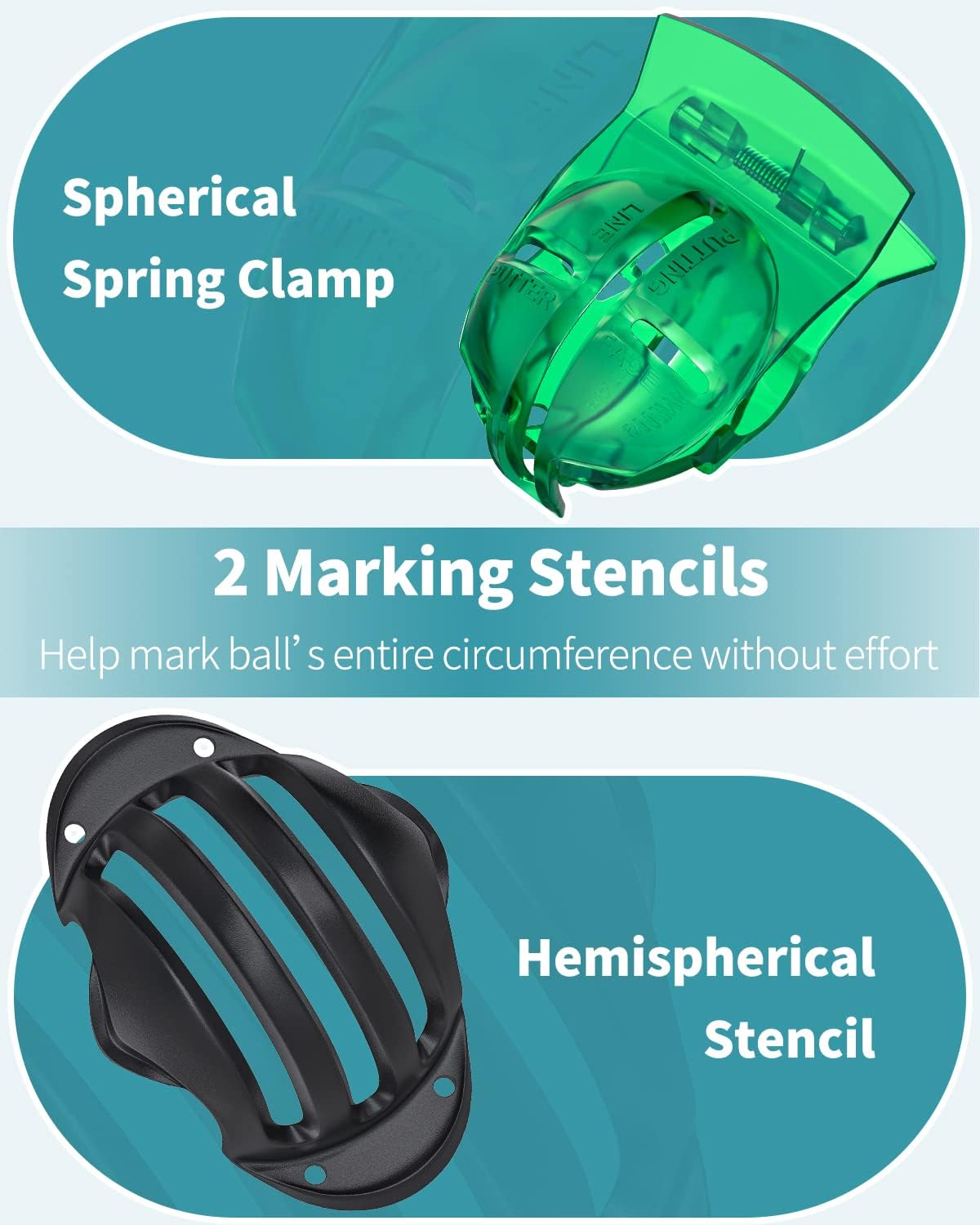 - Ball Marking Kit: Include a hemispherical black tri-line stencil and a green spring clamp with cross and arrow templates. Golf Ball And Marking Pens Not Included!