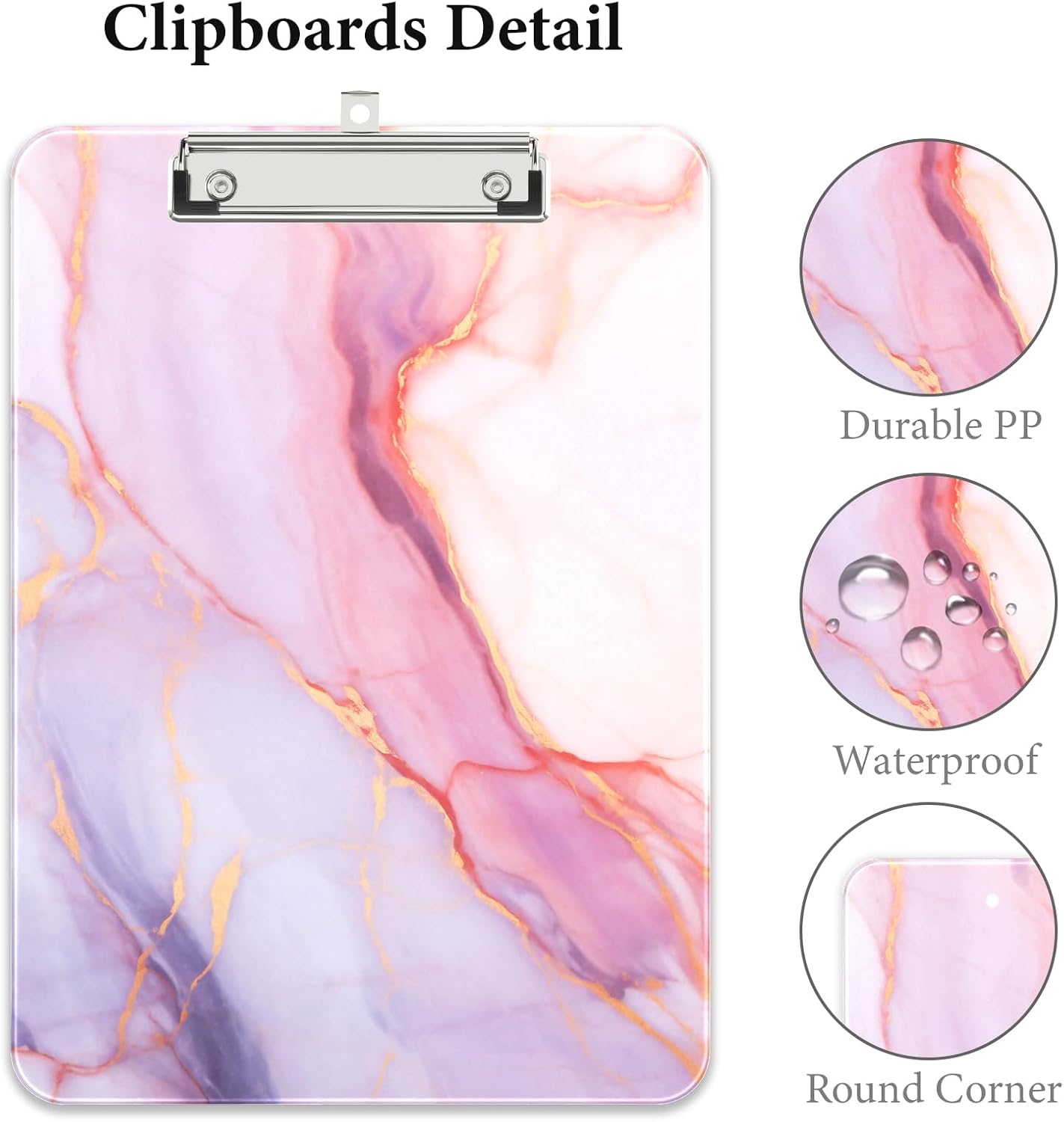 Rimilak Plastic Clipboards with Metal Clip, A4 Letter Size 9 x 12.5 in, Office Decorative for Students Women Men and Kids, Cute Custom Pattern, Pink Gold Marble