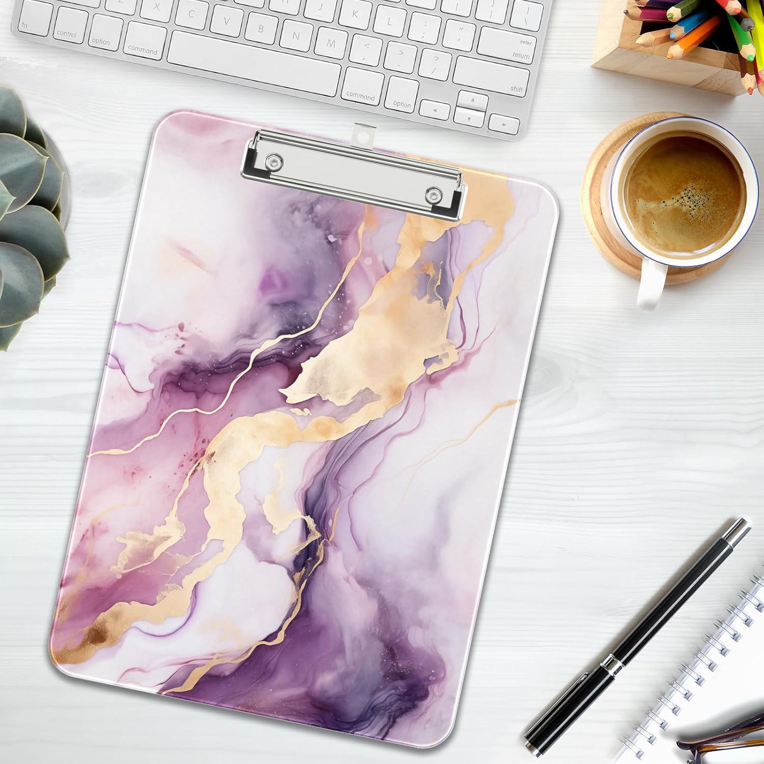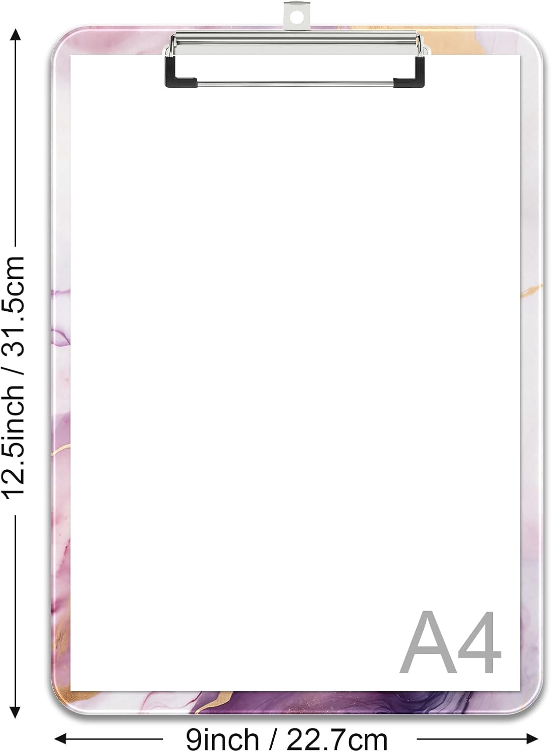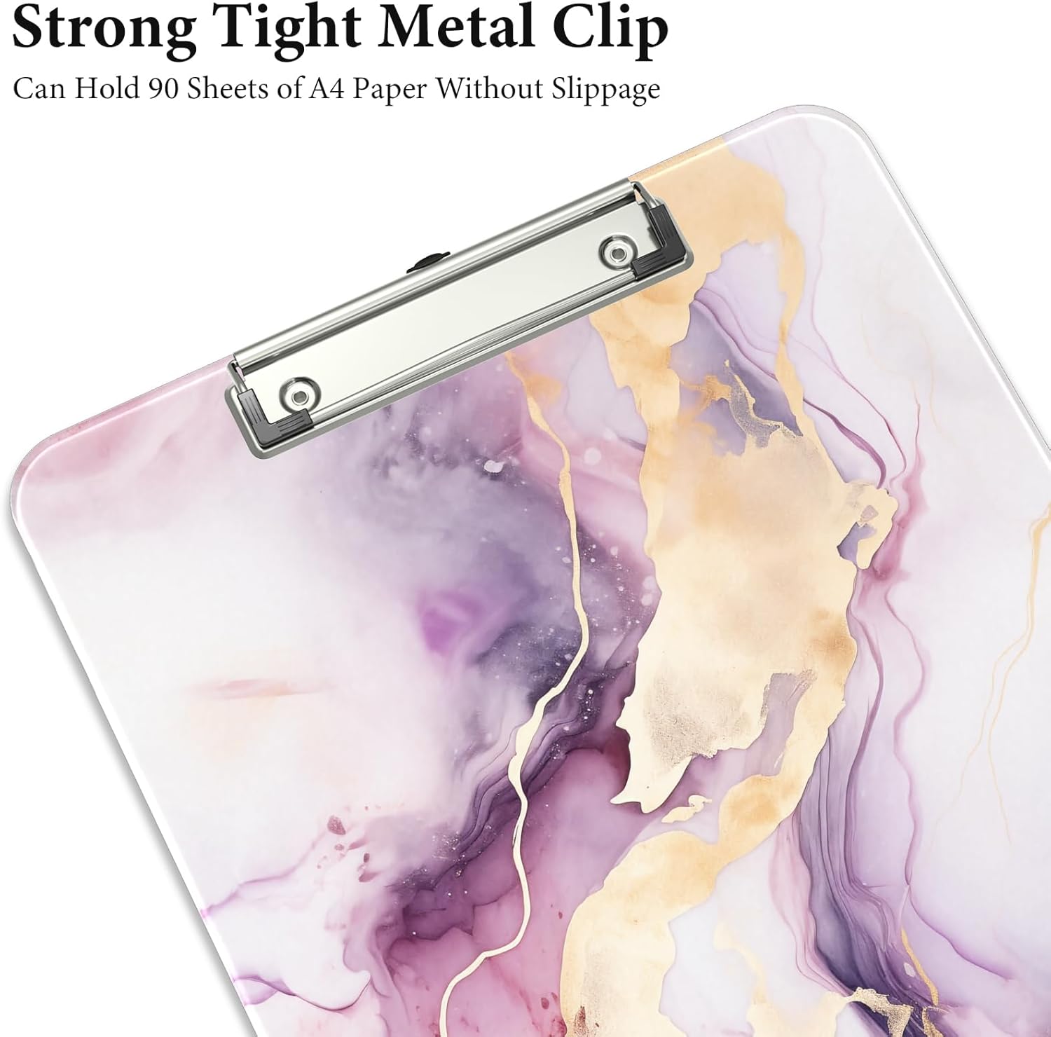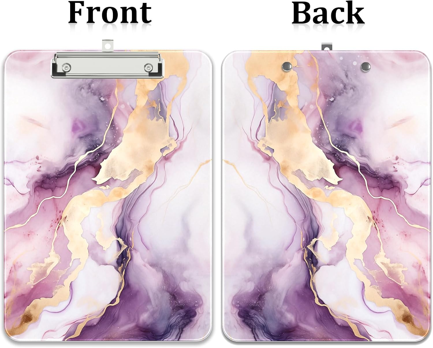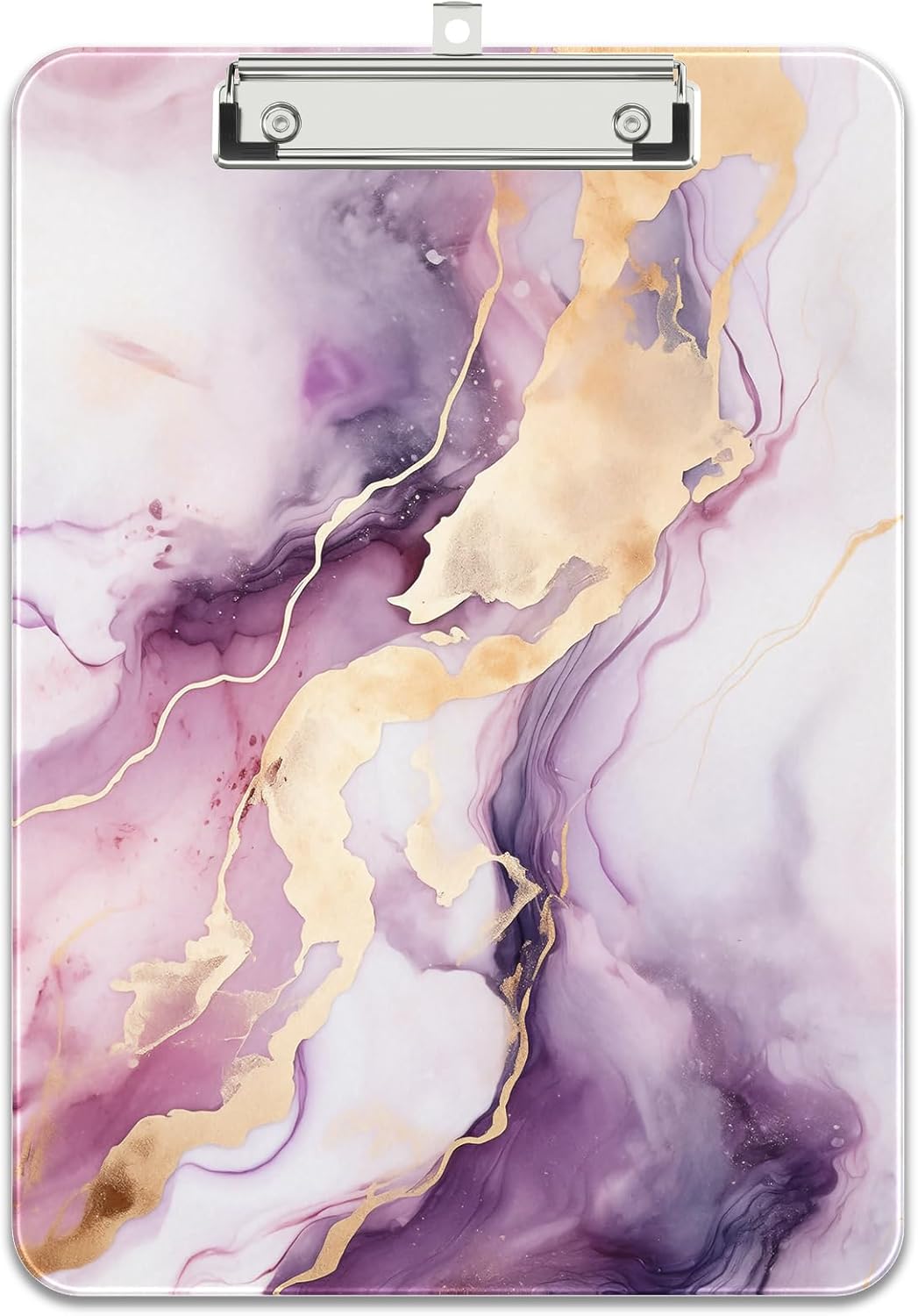 Rimilak Plastic Clipboards with Metal Clip, A4 Letter Size 9 x 12.5 in, Office Decorative for Students Women Men and Kids, Cute Custom Pattern, Purple Gold Marble