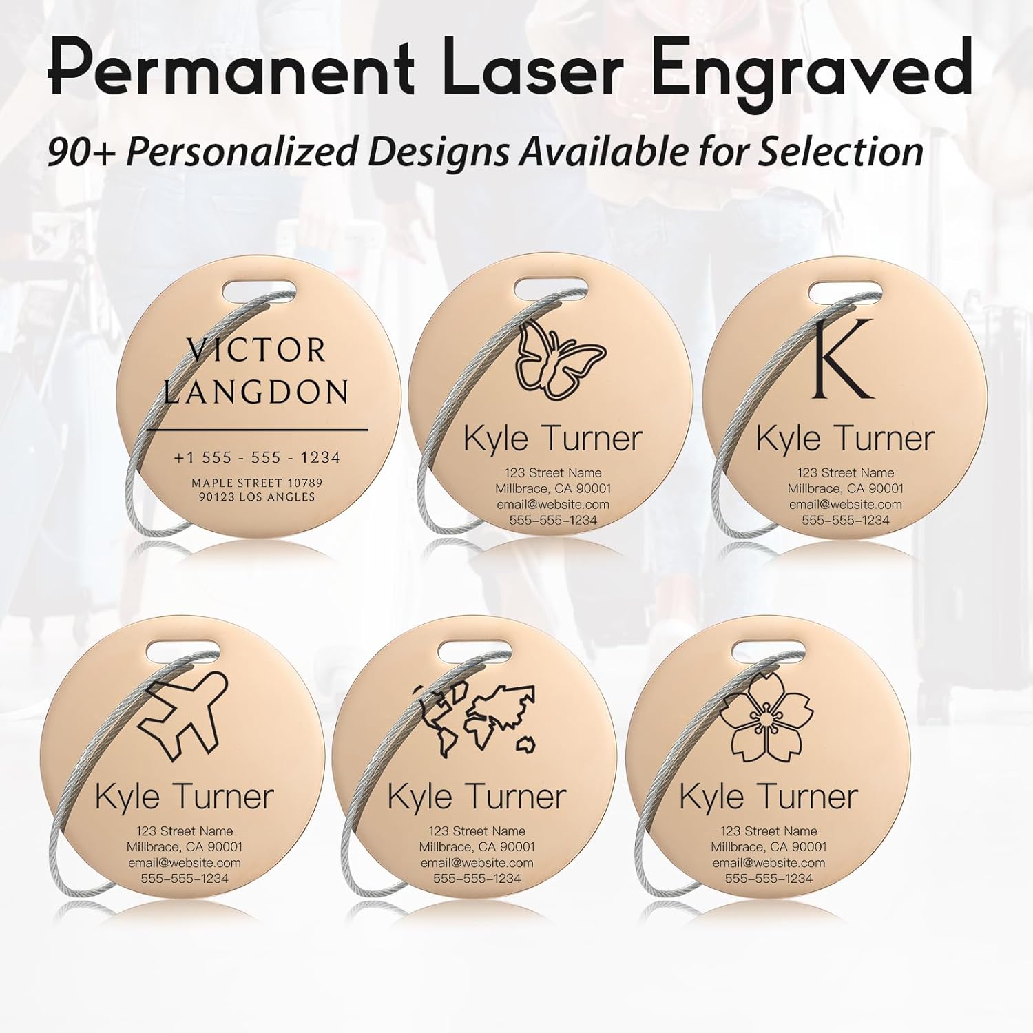 - METAL LUGGAGE TAGS: Heavy duty, Stainless Steel construction for durability.