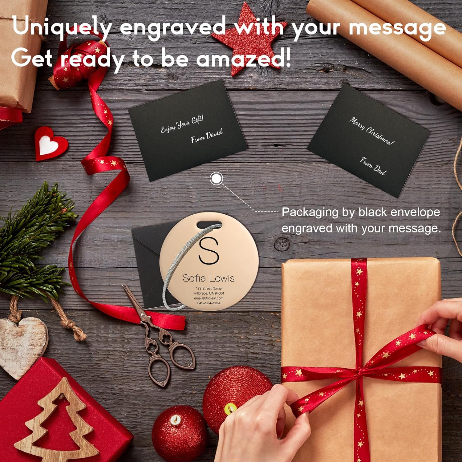 Customized Stainless Steel Luggage Tags: Personalize Your Suitcases, Backpacks, and Bags with Your Text (Rose Gold)