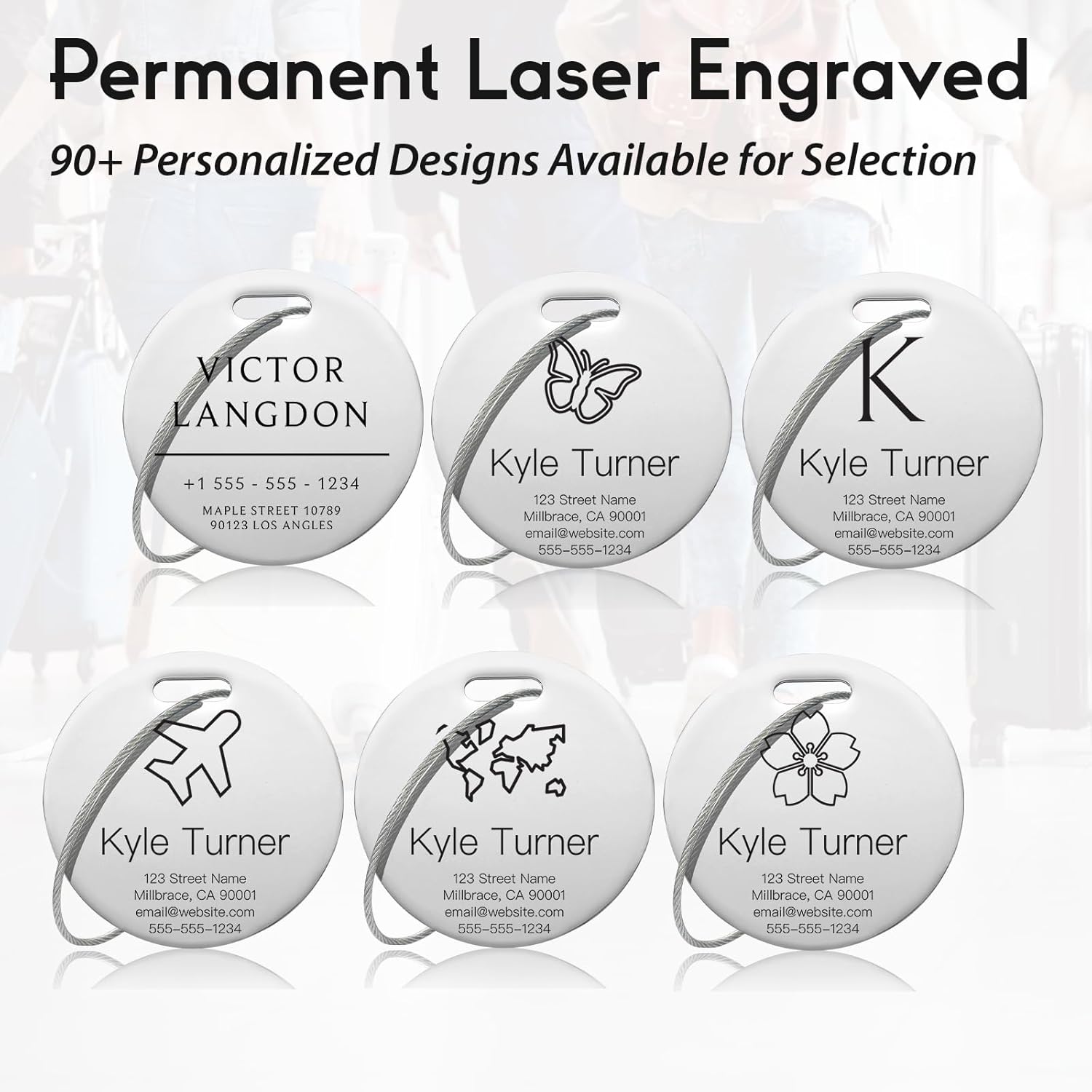 - METAL LUGGAGE TAGS: Heavy duty, Stainless Steel construction for durability.