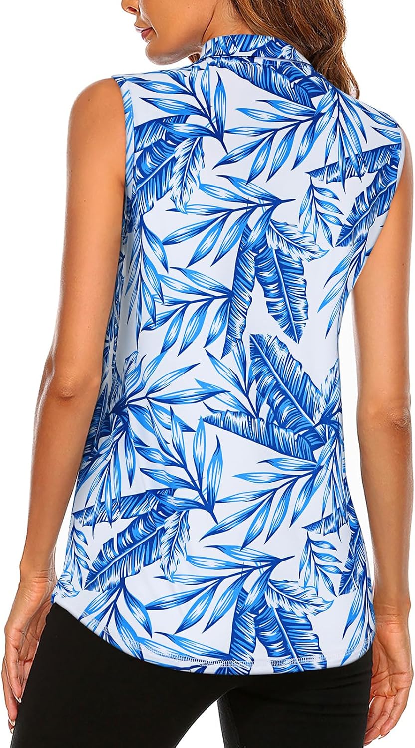 Koscacy Women's Sleeveless Golf Tennis Polo Shirts Zip Up Dry Fit Workout Tank Tops Athletic Shirt