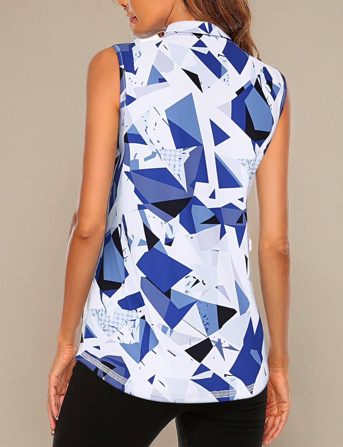 - Half Zipper Collar - Stand out from the crowd with our stand collar, sleeveless, v neck golf tank top. Half zip design allows for neck coverage, venting and easy on-off.