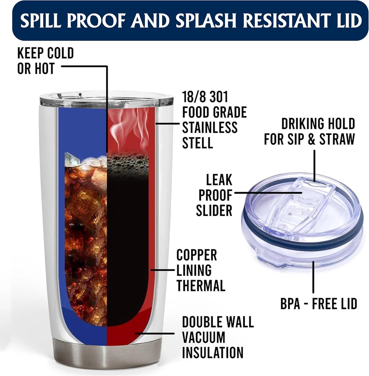 - GREAT DIMENSIONS: Standing at 6.75 inches in height and boasting a 3.25 inch diameter, and with an impressive 20oz fluid capacity, you'll have ample space to carry your favorite drinks, ensuring you stay hydrated and content throughout the day. This tumbler is designed to effortlessly slide into your bag, cup holder, or backpack pocket, makes it an ideal companion for your daily commute or an extended road trip.