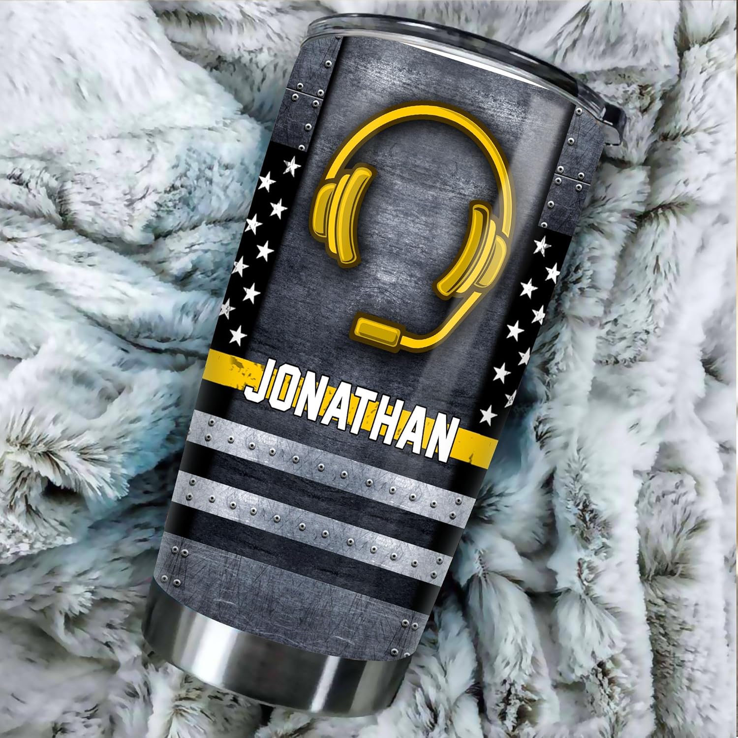 911 Dispatcher Half Thin Gold Line American Flag 20oz Tumbler With Lid - Gifts For 911 Dispatchers Academy Graduation Retirement Birthday Gifts