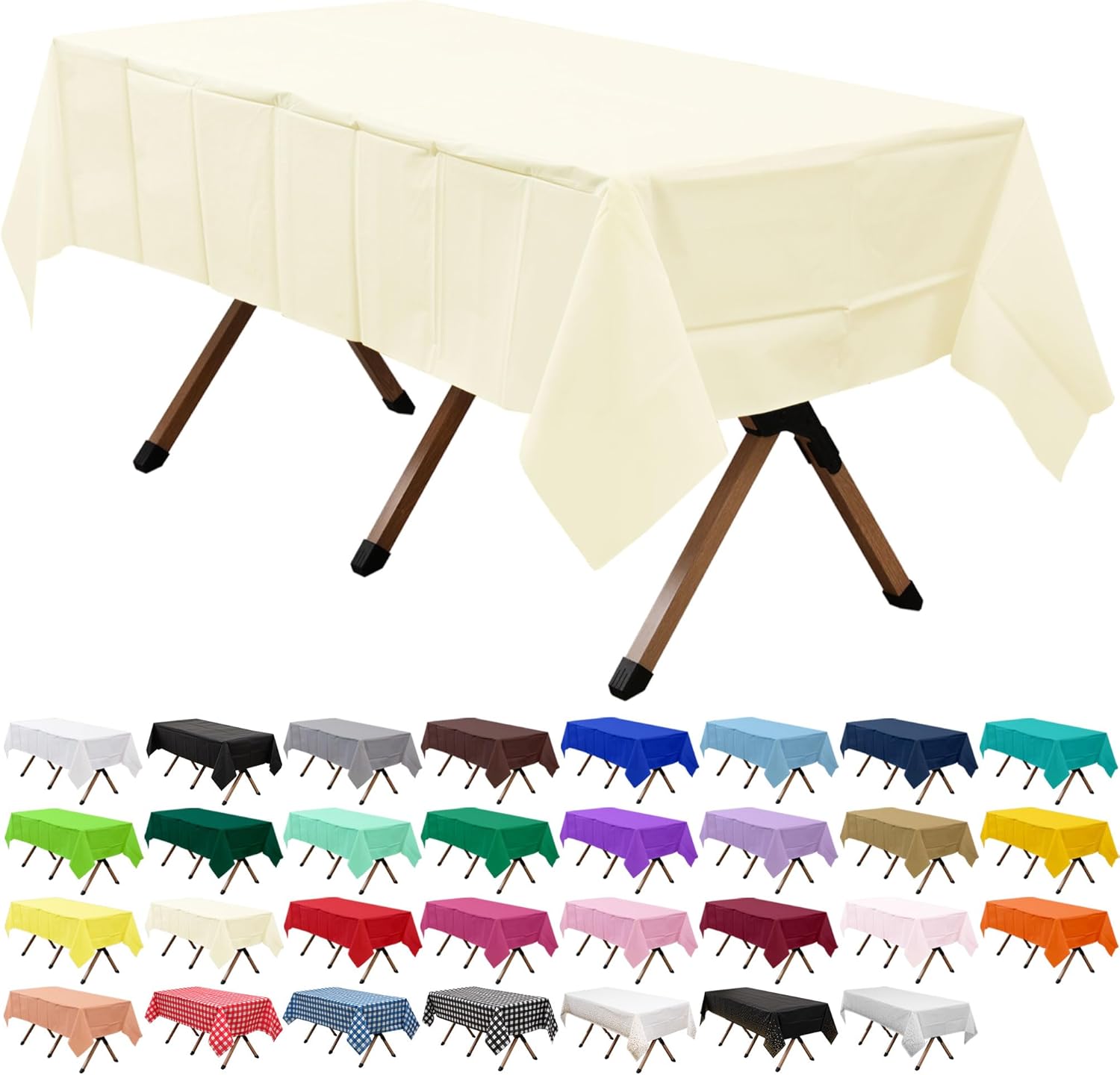 - ā **WATERPROOF & EASY CLEANUP** Experience the worry-free dining with our waterproof plastic tablecloths. Let spills become a thing of the past as the waterproof assurance ensures your table remains clean, even if the stain is hard to clean, just pack it up and throw it away. Say goodbye to scrubbing and welcome the magic of easy cleanup after every meal or event.