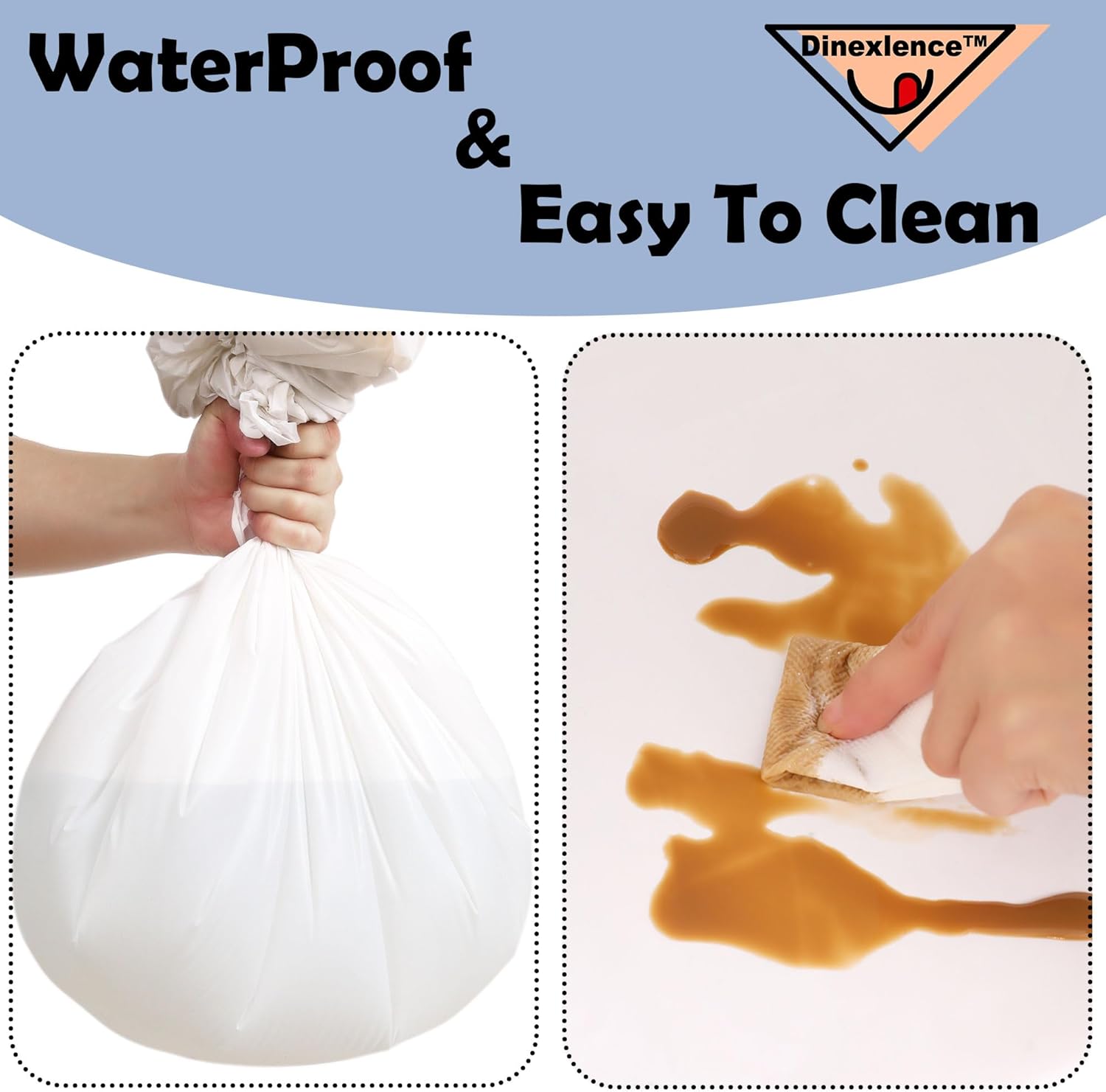 - ā **WATERPROOF & EASY CLEANUP** Experience the worry-free dining with our waterproof plastic tablecloths. Let spills become a thing of the past as the waterproof assurance ensures your table remains clean, even if the stain is hard to clean, just pack it up and throw it away. Say goodbye to scrubbing and welcome the magic of easy cleanup after every meal or event.