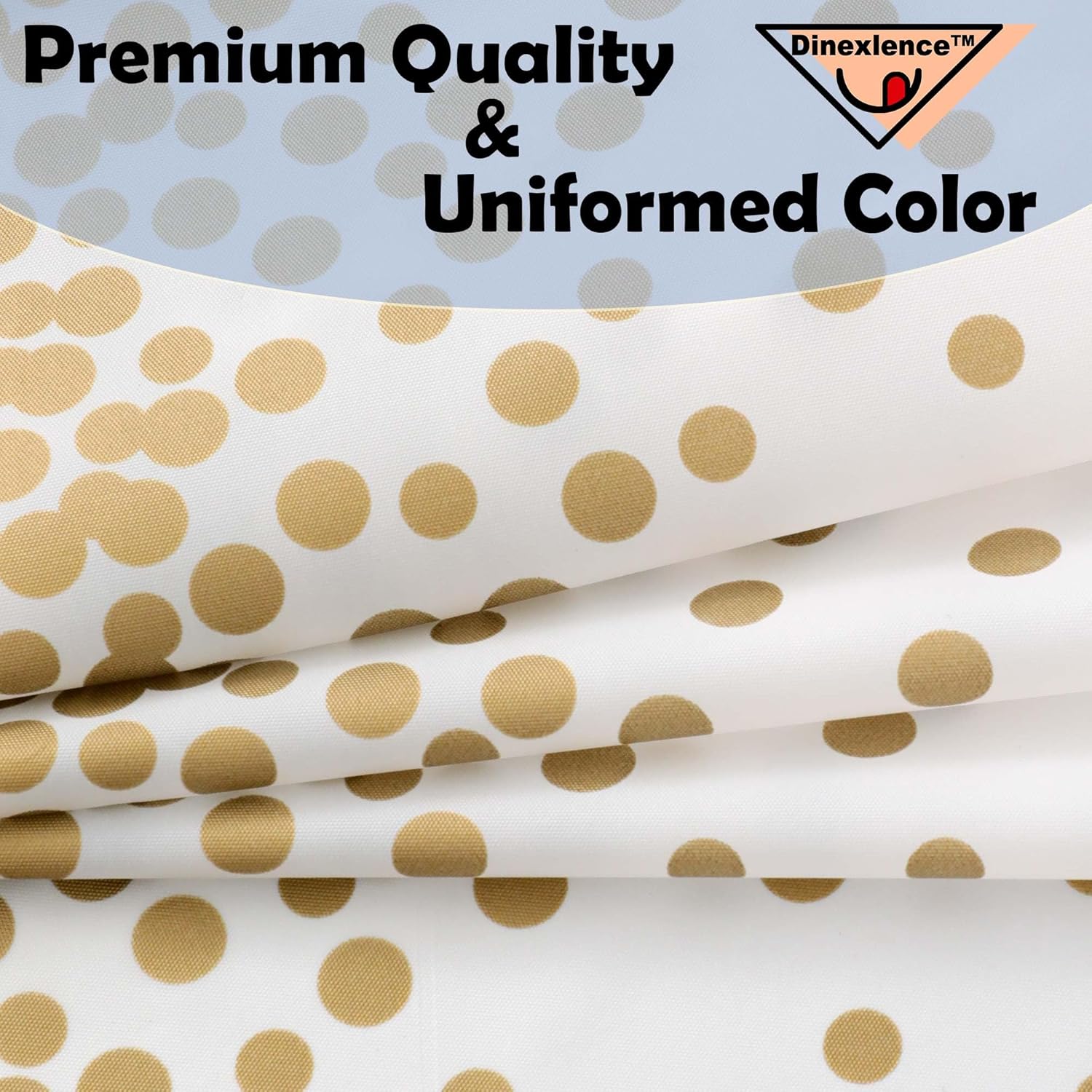 2 Pack Gold Polka Dots White Premium Plastic Tablecloth Rectangle 54 x 108 Inches Reusable Gold Spot Decorative White Table Cover for Dining, Wedding, Party, Indoor and Outdoor use