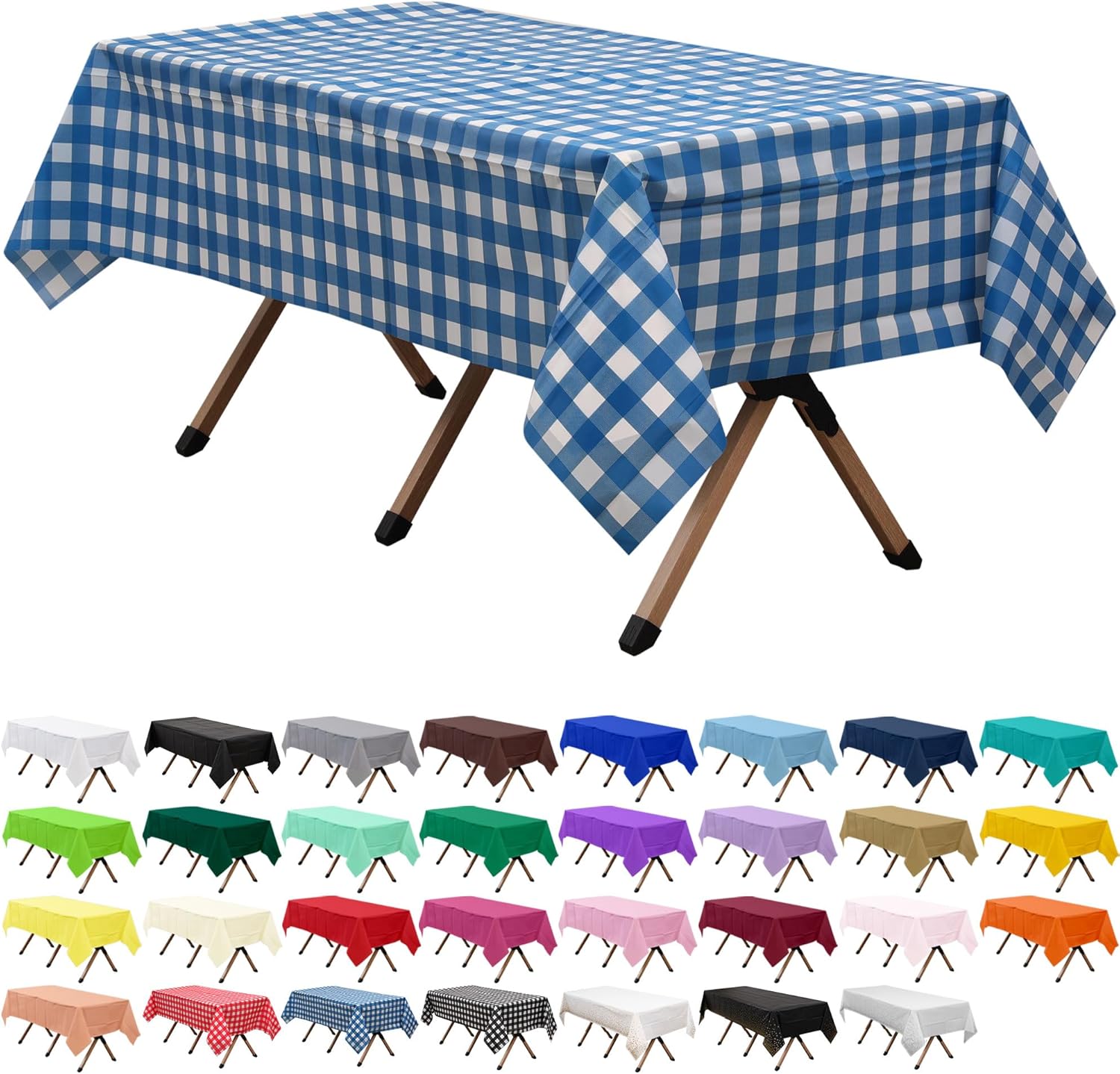 - ā **DISPOSABLE & REUSABLE** Embrace the ease of entertaining with our disposable plastic tablecloths, offering effortless cleanup, ensuring your table is always ready for the next occasion. Convenience meets elegance in every use. In the same time if you want to make an eco-friendly choice, Our reusable plastic tablecloths not only offer one-time use but also an enduring experience. Simply wipe off the stain and fold it up, it can still be used in your next event.