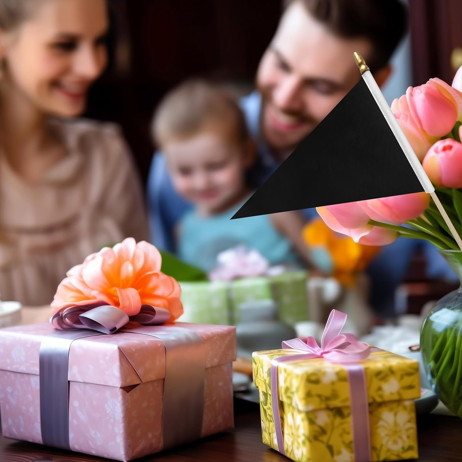 20 Pack Solid Color Black Blank Pennant Flags on Wood Stick Small Mini Plain DIY Graffiti Flags,Decorations for Parades,Grand Opening,Kids Birthday,Sports Clubs,5x8 Inch
