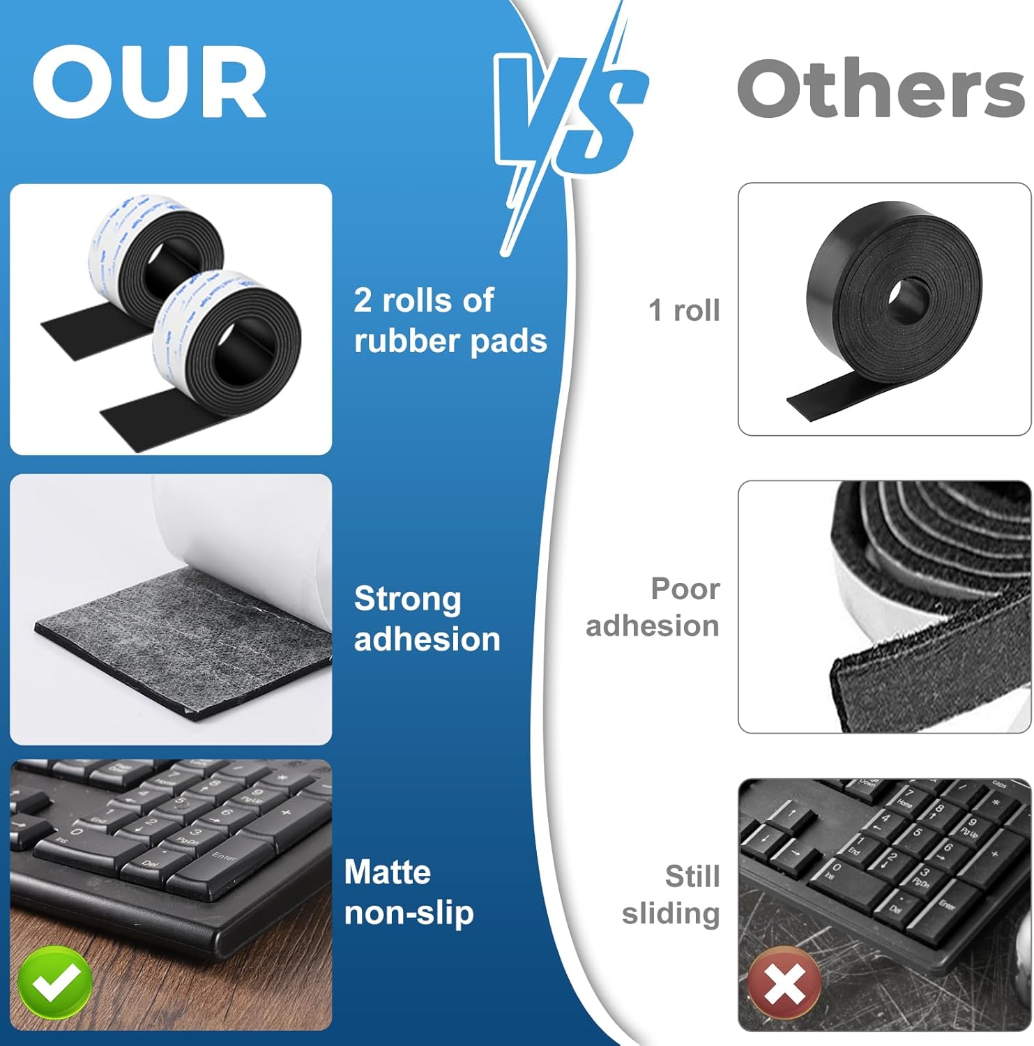 Adhesive Rubber Strips, 2 Rolls Rubber Tape, Non Slip Adhesive Strips Rubber Feet for Any Furniture and Appliances 1x40 inch