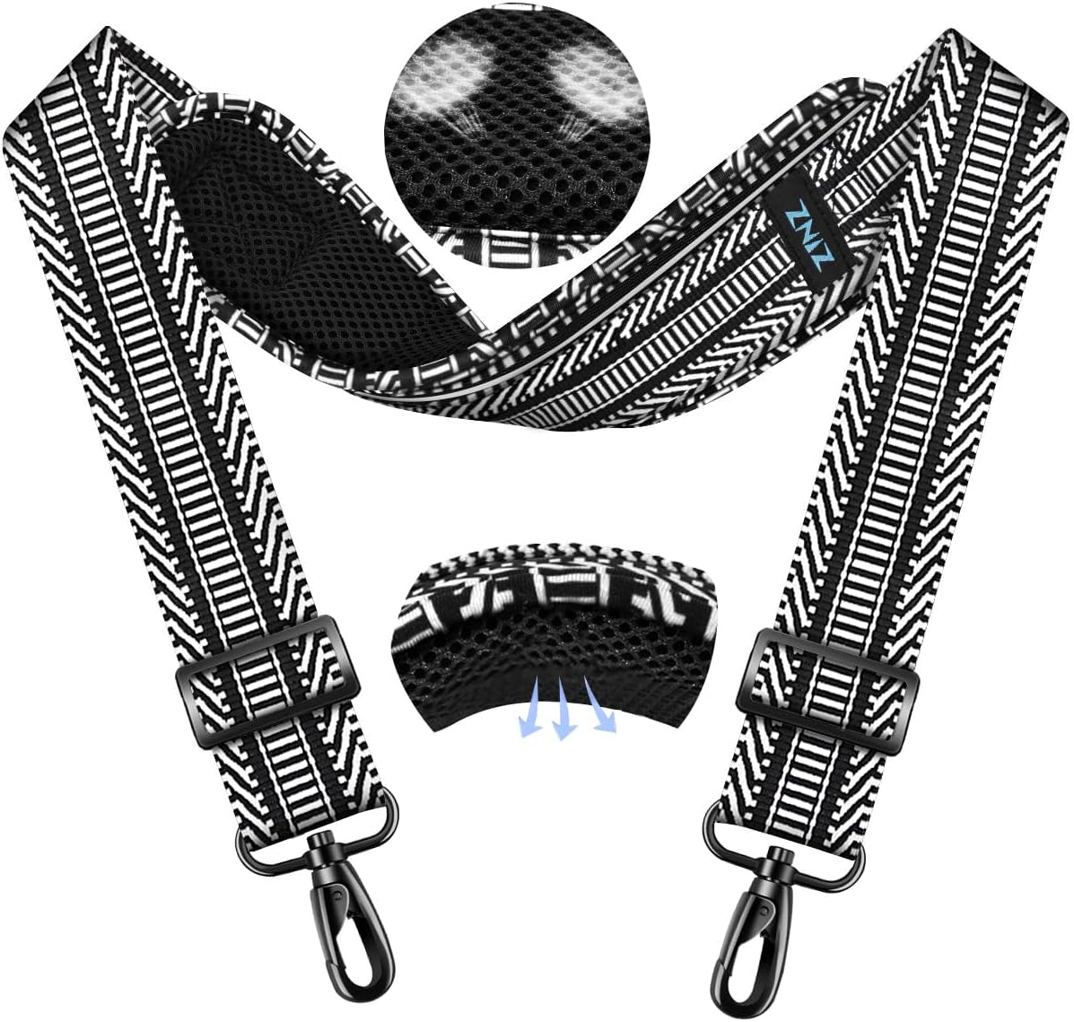 ZINZ 79.5" Universal Strap with Ultra-Thick Fixed Breathable Pad - Adjustable Heavy-Duty Shoulder Strap for Laptop, Crossbody, Luggage, Gym, Camera Bag and More - TH01B03