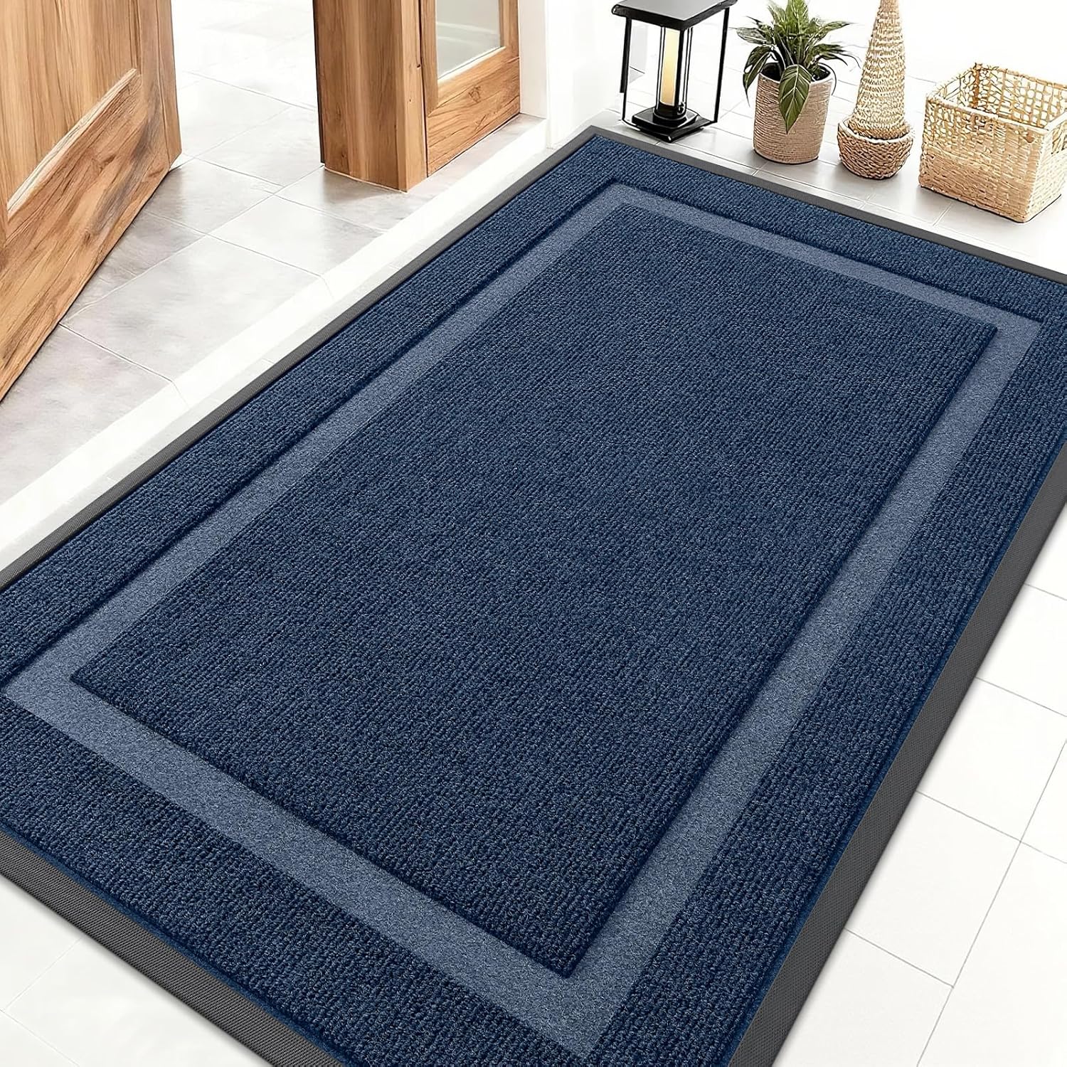 OLANLY Front Door Mat Indoor Outdoor Entrance, Waterproof All-Season, All-Weather Doormat, Sturdy Natural Rubber, Fade Resistant, Low Profile, Easy Clean Patio Porch Entryway Mat, 71x47, Blue