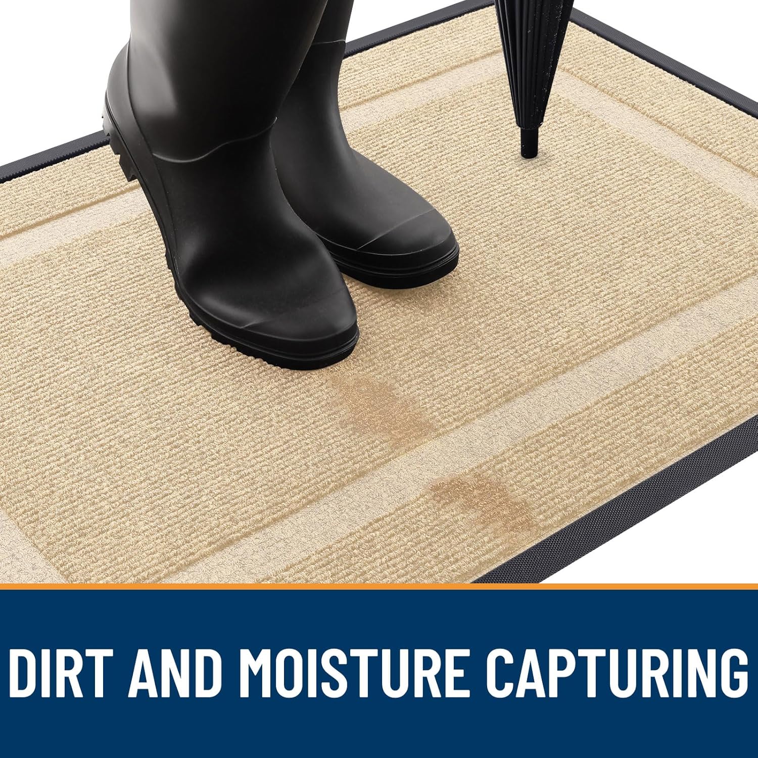 OLANLY Front Door Mat Indoor Outdoor Entrance, Waterproof All-Season, All-Weather Doormat, Sturdy Natural Rubber, Fade Resistant, Low Profile, Easy Clean Patio Porch Entryway Mat, 59x35, Beige