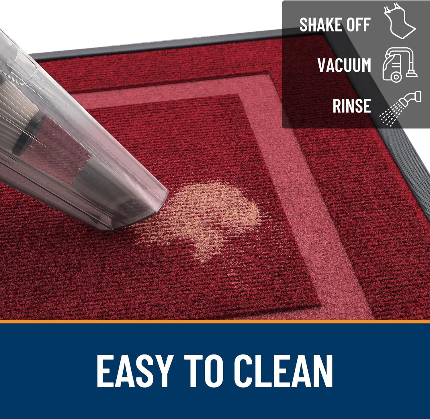 - [EASY TO CLEAN] The OLANLY front door mat is designed for quick and effective cleaning using a vacuum or traditional broom cleaning methods. Additionally, tapping and shaking the back of the doormat helps remove residual debris. For a deeper clean, rinse it with a garden hose and hang the mat in a ventilated place or dry it in a dryer. This versatile cleaning method ensures that your doormat stays clean and tidy, ready to welcome guests.