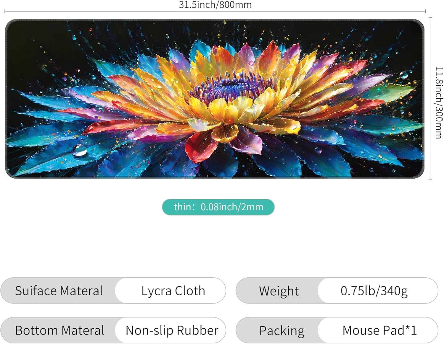 - Large Size - 31.5*11.8*0.08 inch(800*300*2mm)makes it provide larger area fits both for keyboard and mouse