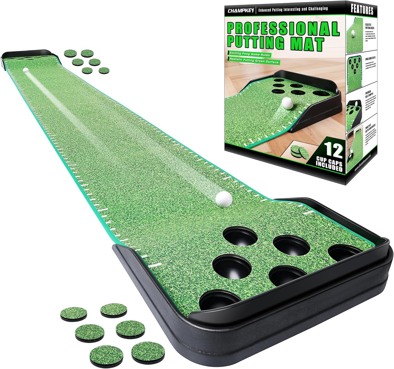 CHAMPKEY Golf Putting Green Indoor - Advanced Guides Golf Putting Mat - Enhance Putting Accuracy and Challenge