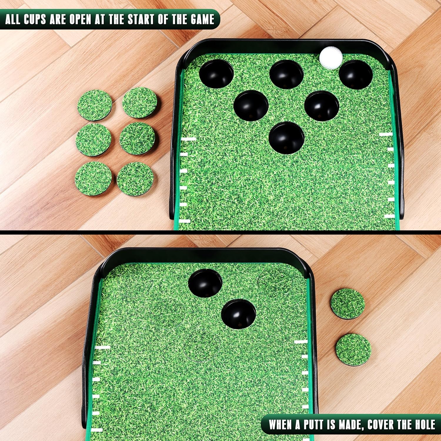 - Interesting Game Rules: This Pong game putting green is ideal for 2-4 players. Hit putts into the cups of the opposing team and cover the holes after sinking a putt; the first team to make 6 holes wins. Alternatively, create your own game rules with friends for added enjoyment!