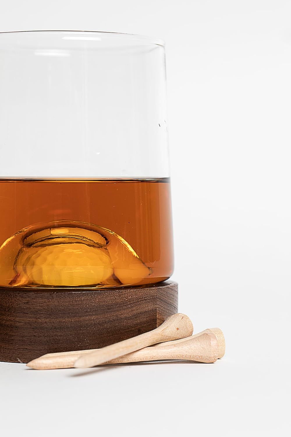 - DURABLE - The whiskey glass is made from high quality borosilicate glass and the wooden coaster is made from premium hardwood. The golf ball is glued to the surface of the wood and packed tight.