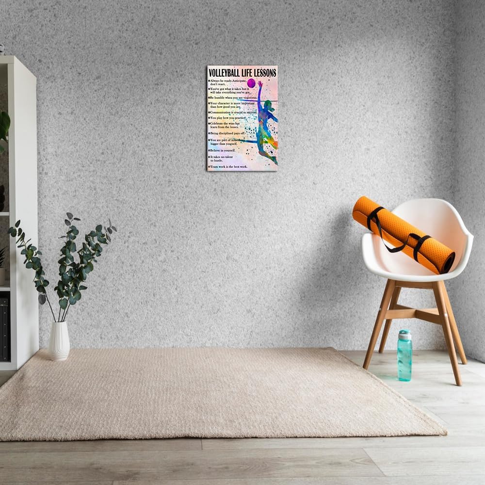Strofupp Volleyball Poster Sport Quotes Wall Art Motivational Picture Prints Vintage Volleyball Wall Art Watercolor Painting Poster 08x12 inches