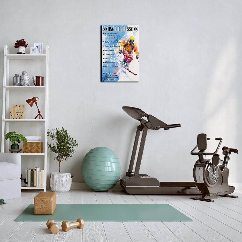 Strofupp Skiing Wall Art Inspirational Sport Quotes Poster Framed Life Lessons Pictures Wall Art Painting Vintage Skiing Poster Artwork 12x18 inches