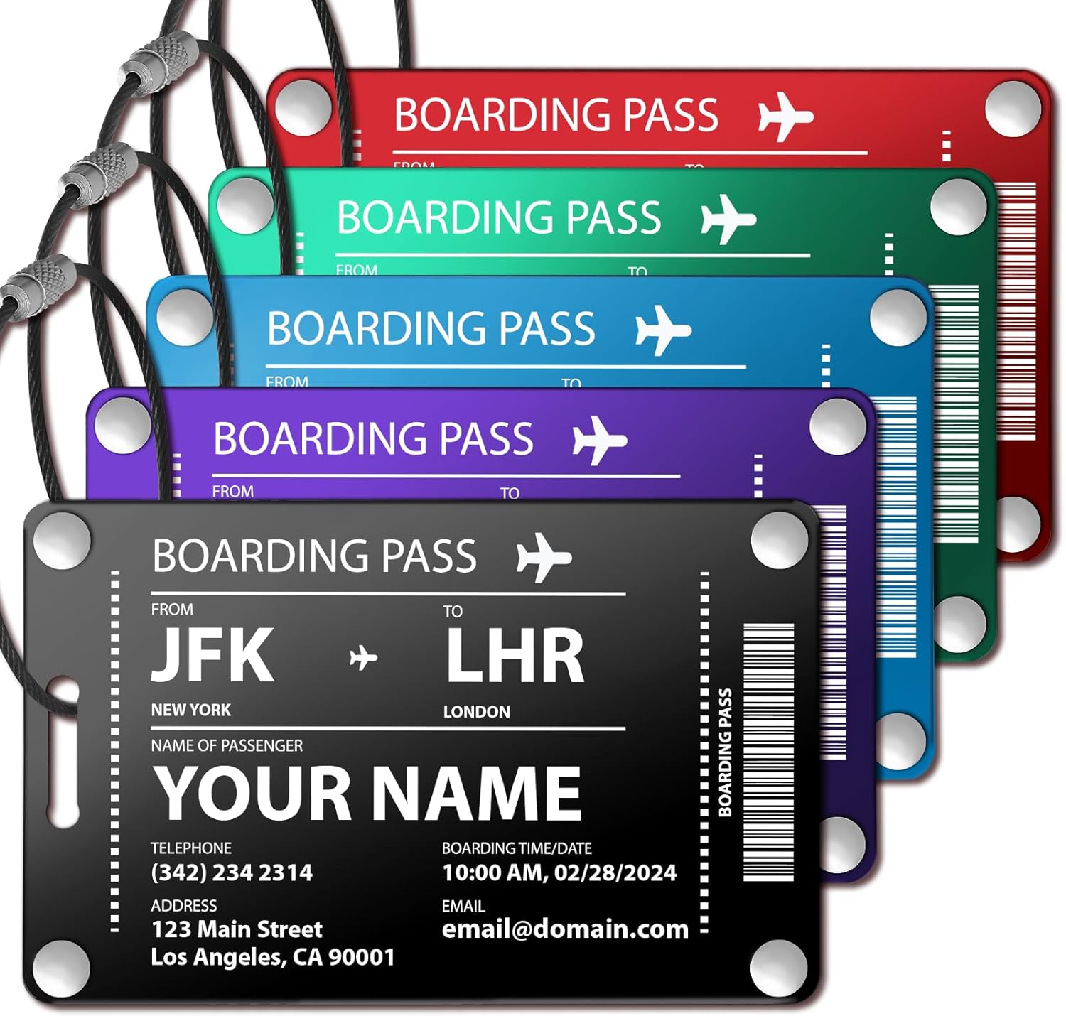 Luggage Tags for Suitcases: Boarding Pass Style Personalized Luggage Tags and Bags with Customizable Flight Details