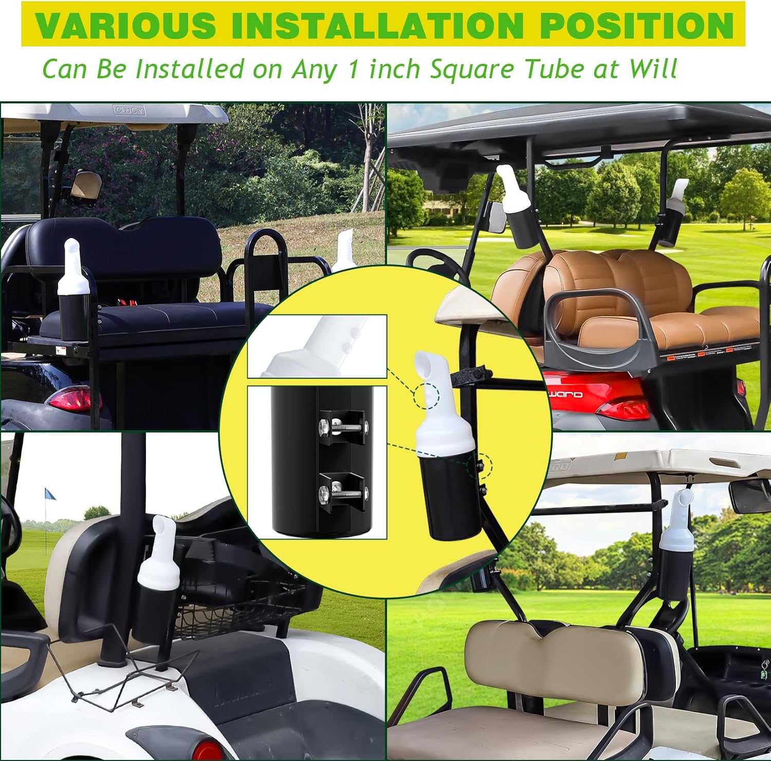 - EASY INSTALLATION AND DRILLING-FREE: This sand bottle can be installed without drilling holes, which can protect your golf cart from damage. It can be mounted on any square tube of your golf cart as well, with various mounting positions. And easy to disassemble and remove