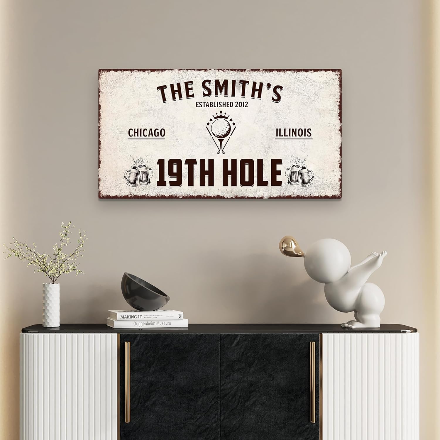 Golf Sign, 19th Hole, Retro Wall Art, Golf Wall Decor, Personalized Vintage Golf Sign for Man Cave Bar, Golfing Room, Golf Decor for Men Husband Boyfriend Dad (Golf Art with a Golf Ball)