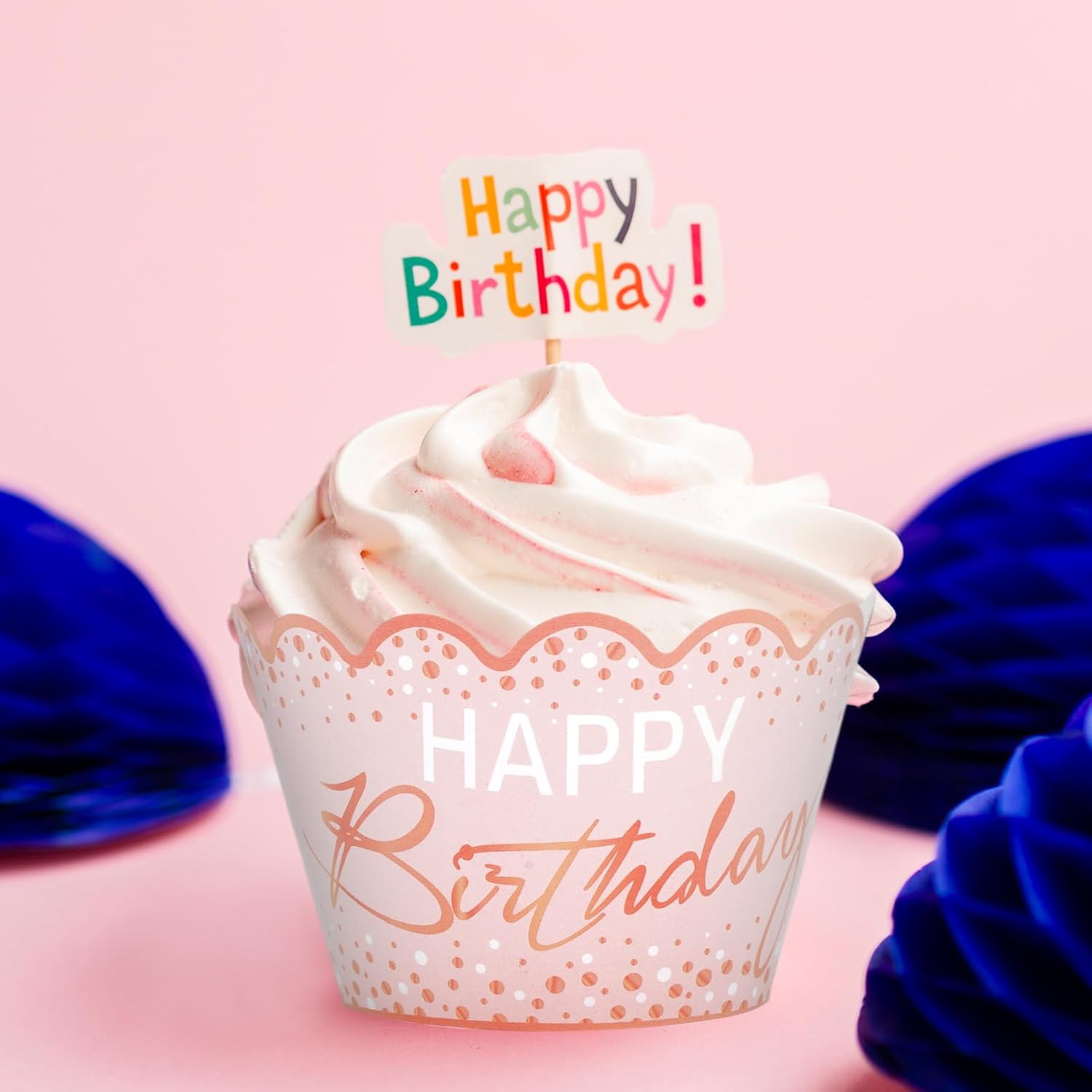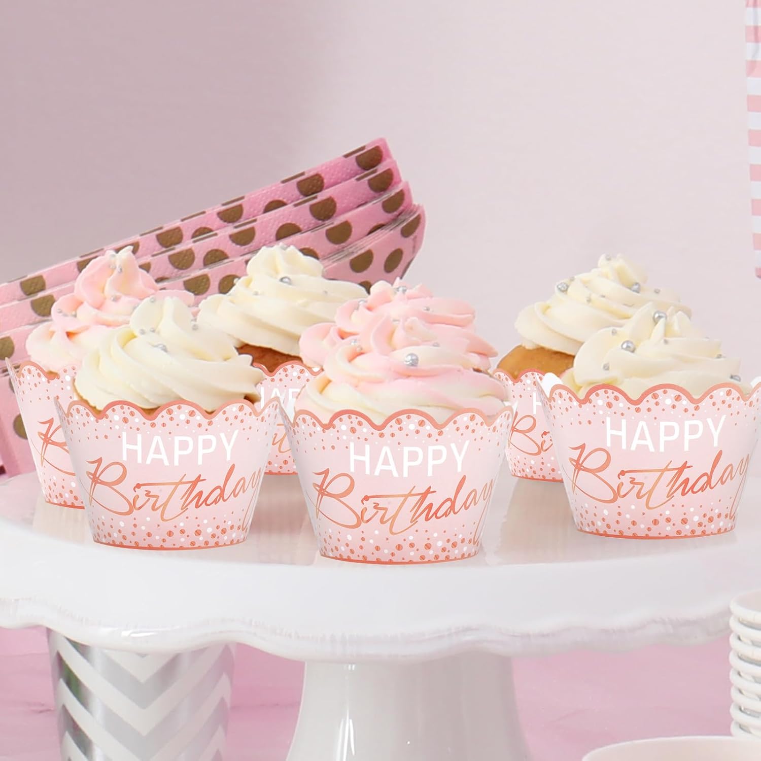 - Birthday Design - Our cupcake liners are mainly in pink, rose gold and white color, decorated with dot patterns and letter Happy Birthday, perfect for celebration, add a cheerful atmosphere.
