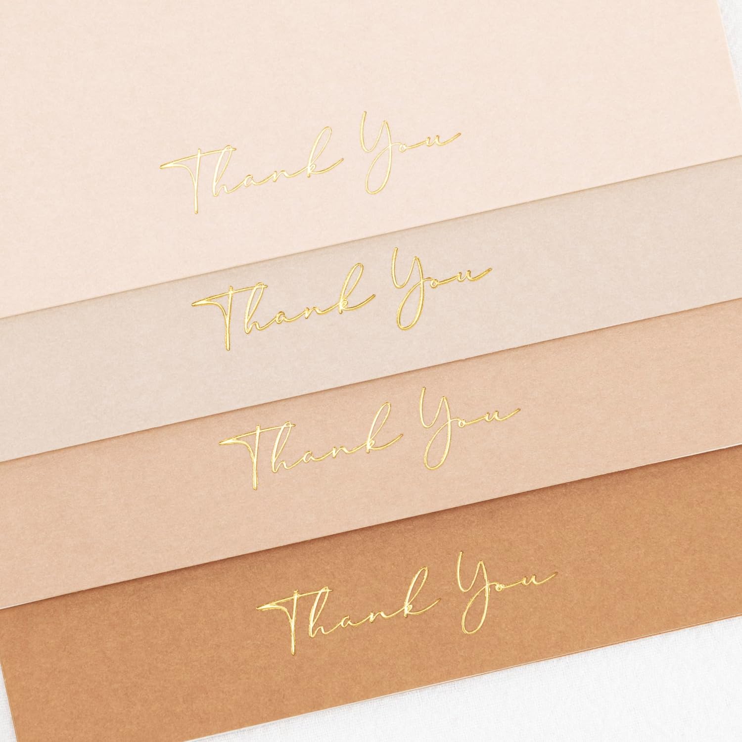 - Elegant Design: Elevate your gratitude with this exquisite set of 4x6 thank you cards with envelopes, featuring five elegant hues. Each thank you card is adorned with luxe gold foil 'thank you' script at the base—a timeless touch for weddings, gifts, or heartfelt notes