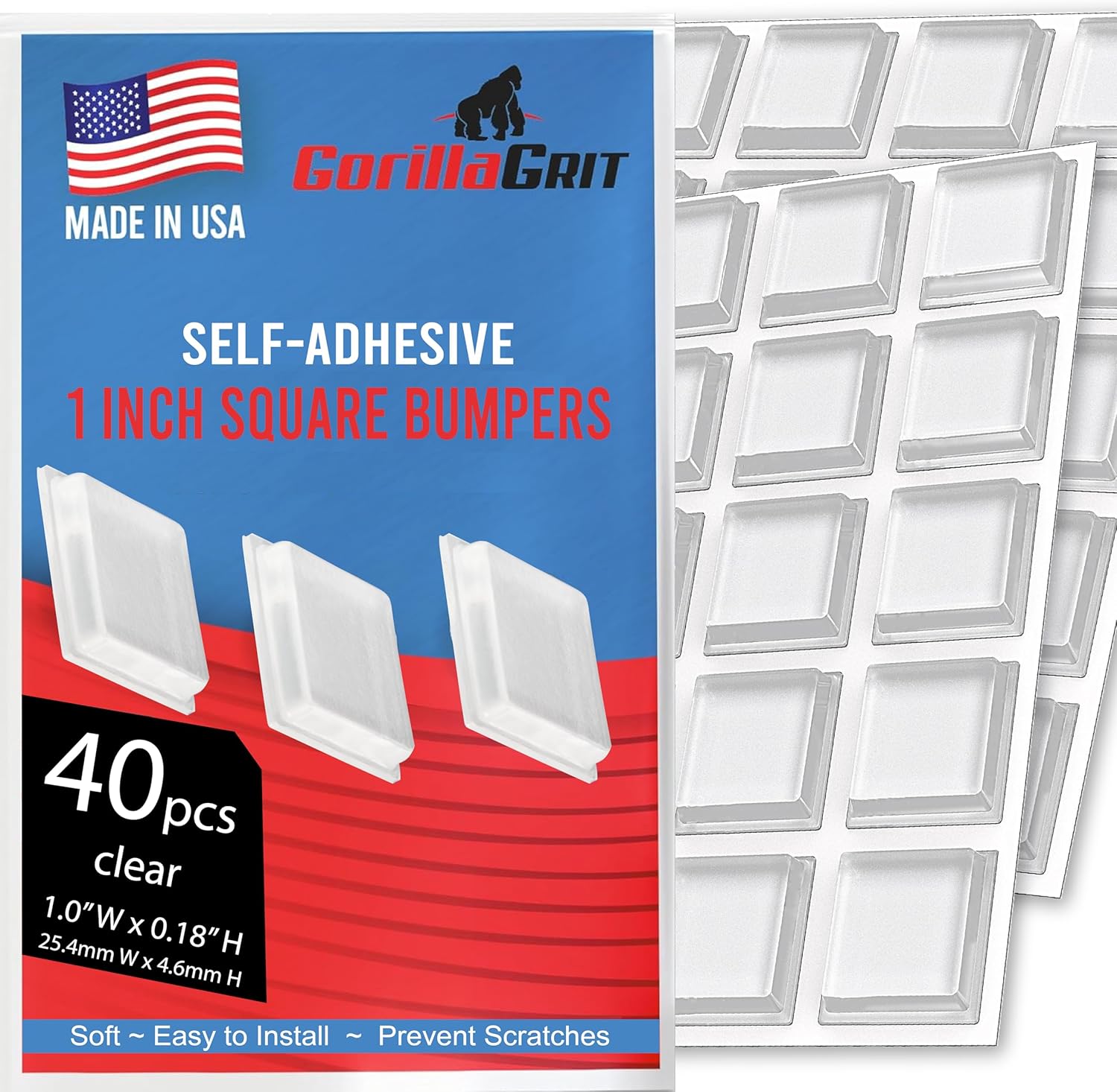 Clear Rubber Bumpers Large - Rubber Feet for Cutting Boards - Glass Table Top Bumpers, Picture Frame Spacers, Self Adhesive Furniture Pads - 1 Inch Square Self Stick Pads - 40 PCs