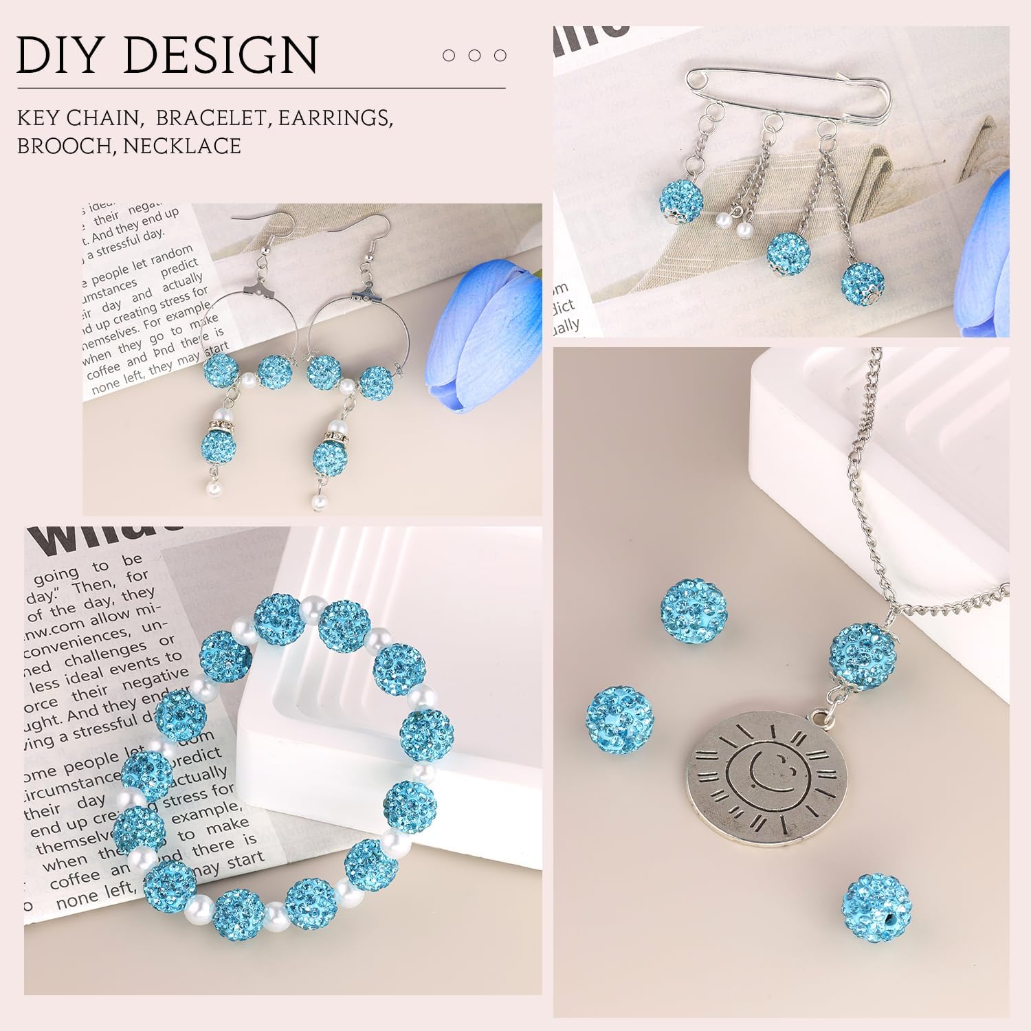 150 pcs 10mm Rhinestone Beads for Jewelry Making, Aquamarine Shiny Round Shamballa Disco Beads Bulk, Sparkle Crystal Clay Christmas for Bracelet Baseball Necklace Earring Crafting and DIY