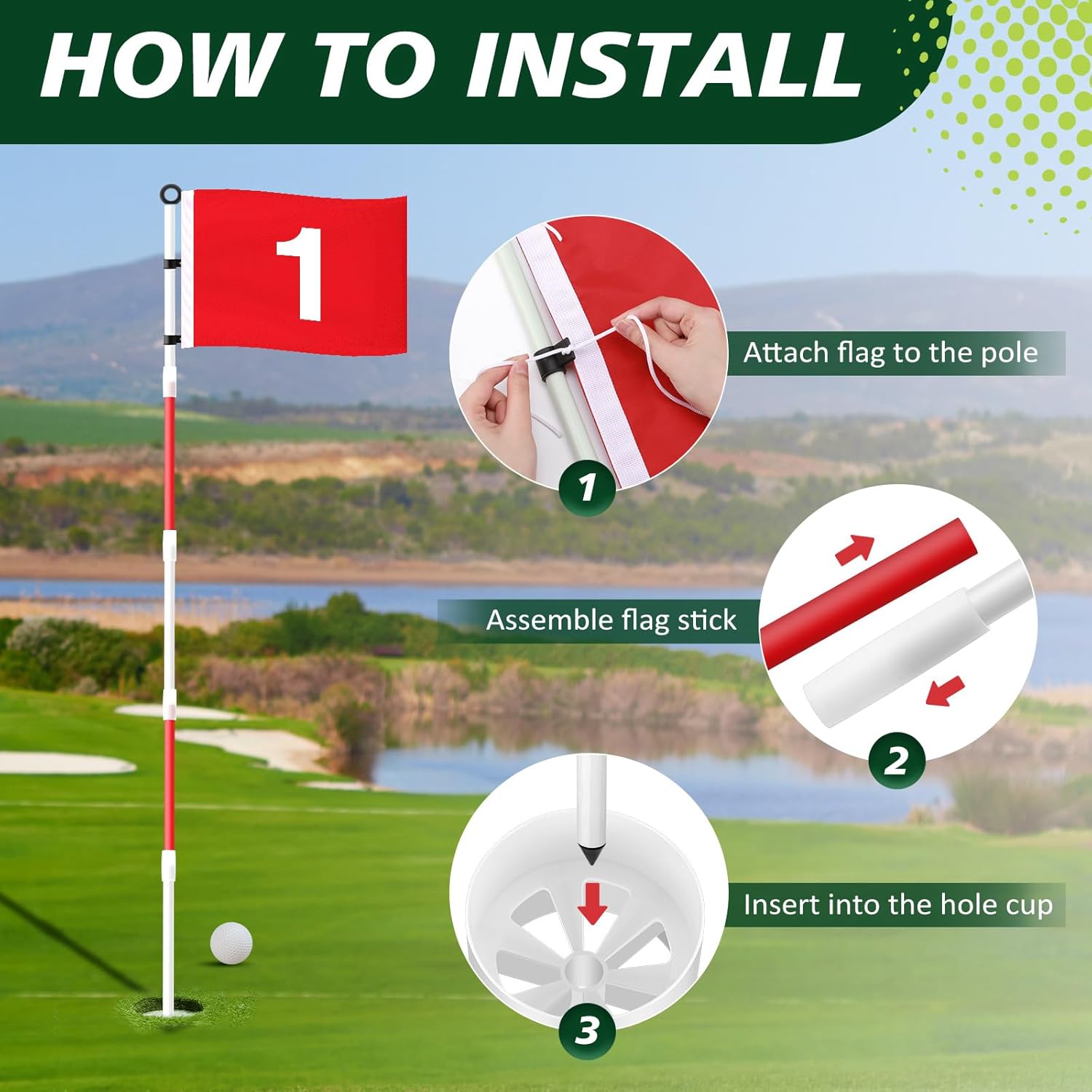 - Practical and Portable Flagpoles: with the detachable golf flagstick 6ft consisting of 5 individual poles, transporting and setting up has become convenient; These poles are connected strongly enough to withstand winds without falling off, ensuring installation anytime and anywhere