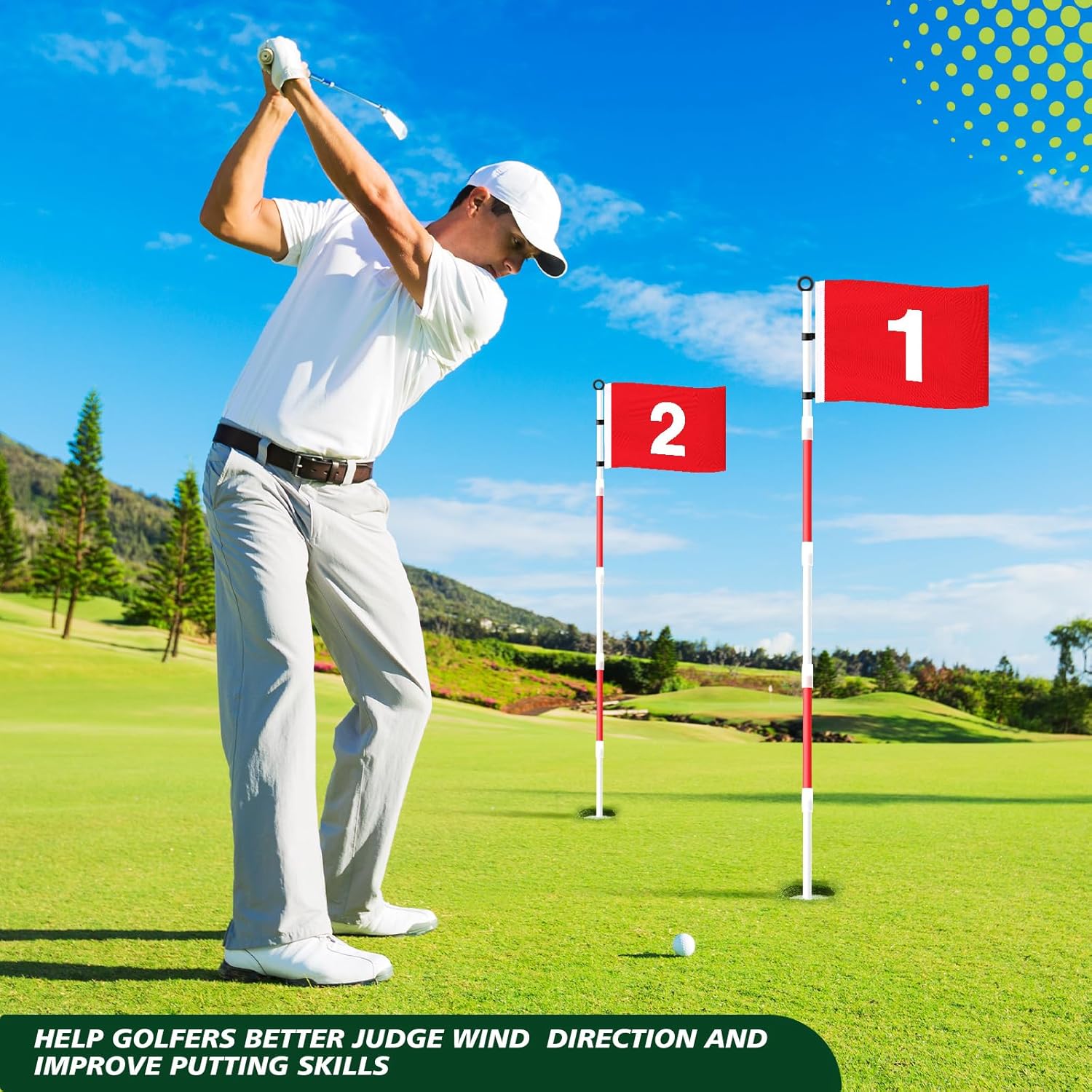 - Comprehensive Detachable Golf Flagstick Set: you will receive 2 mini red golf flags, including No. 1 and No. 2 golf pin flags respectively, 2 golf hole cups and 2 flagpoles, each with a length of about about 6 ft/ 1.8 m; An abundant combination beautifully designed for your convenience in enhancing golfing experience