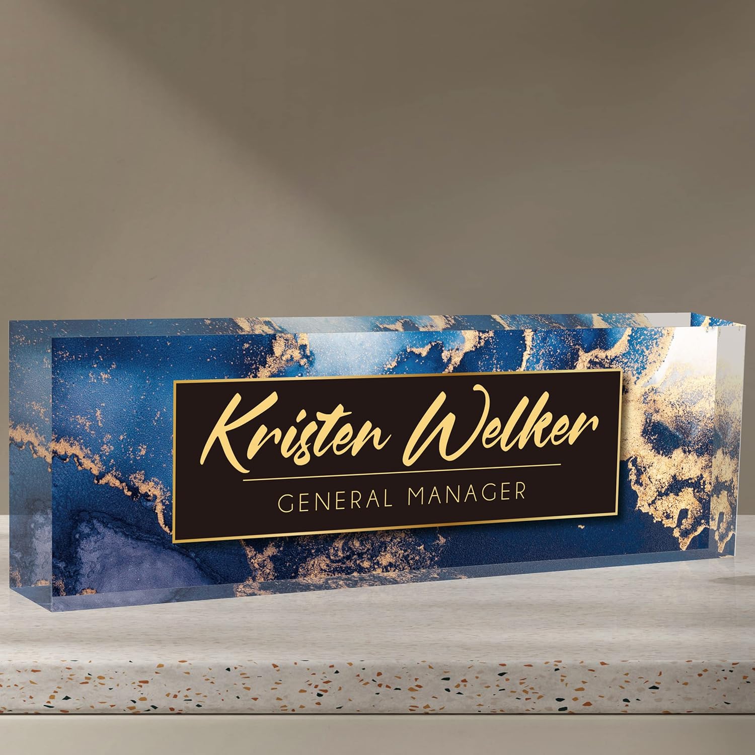 Personalized Name Plate for Desk Custom Acrylic Desk Name Plate Custom Employee Appreciation Gifts Office Gifts for Women, Men, Boss, Coworkers, Teacher, Nurse (A-Blue Marble)