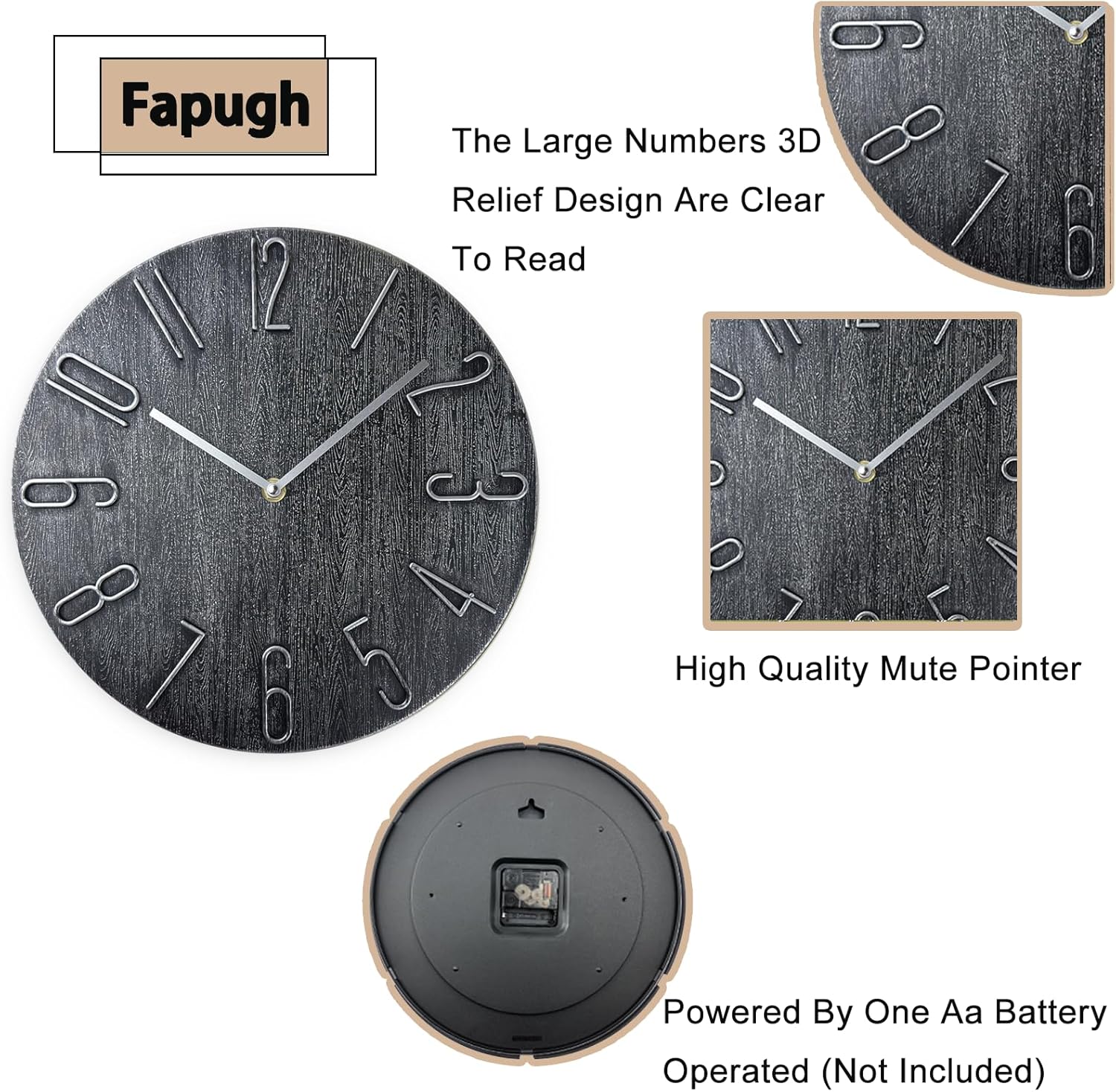 - Wall clock - ABS plastic dial with large numbers for easy reading