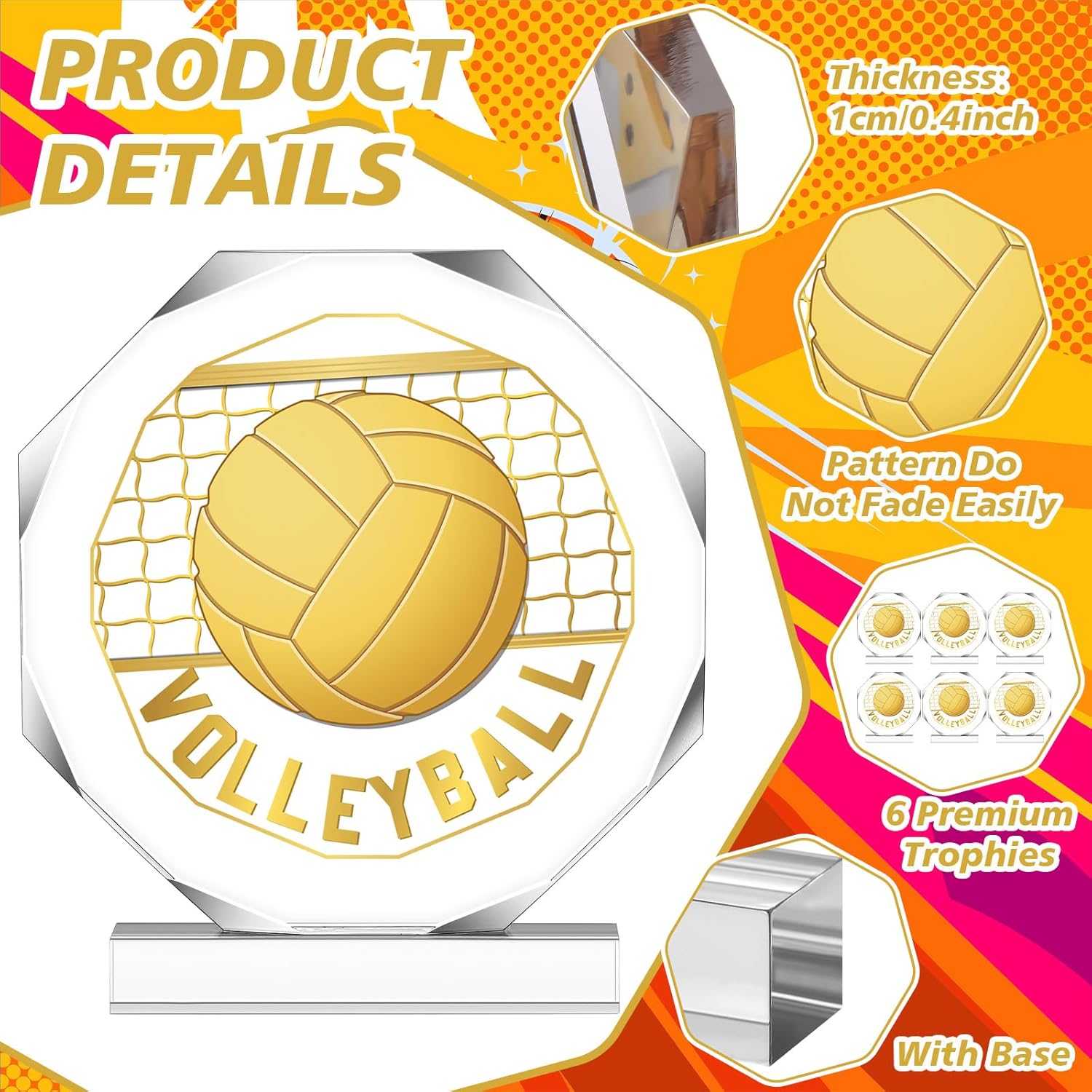 - You Will Receive: 6 volleyball trophies; This set of 6 is appropriate for honoring the entire team or giving recognition to individual participants; Elegantly crafted, these trophies would become cherished keepsakes to remember a victorious season for years to come