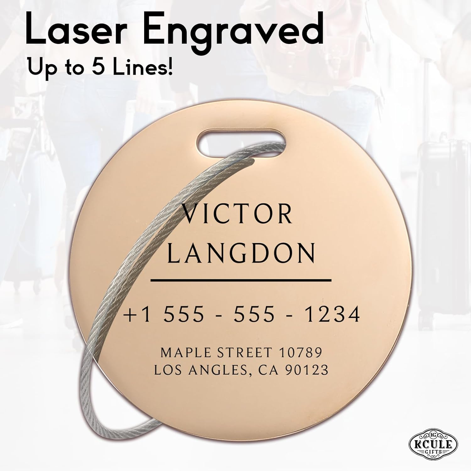 Stainless Luggage Tags for Suitcases: Metal Personalized Luggage Tags and Bags with Customizable Texts (Rose Gold)