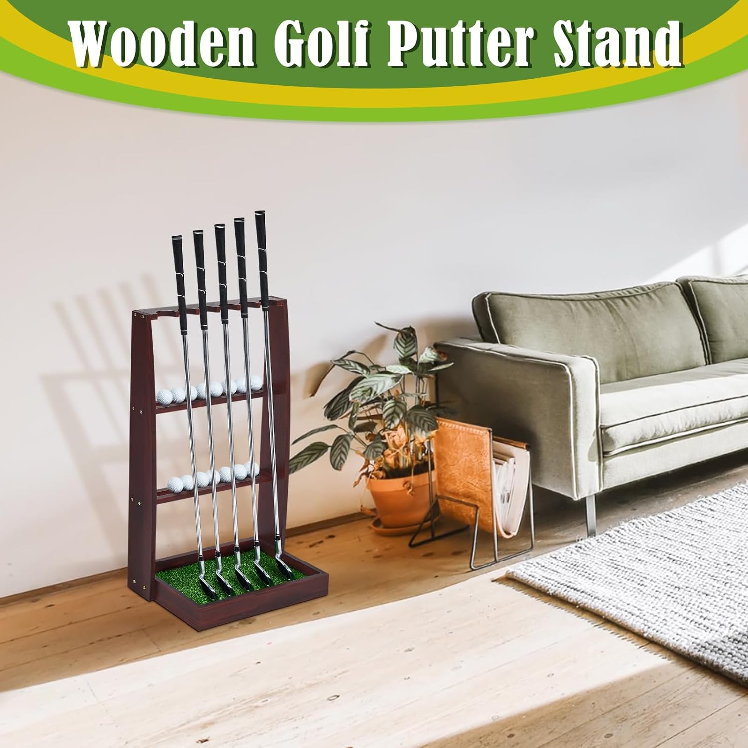Lenwen Golf Putter Stand Wooden Display Rack Golf Club Holder Stand, Brown Golf Club Organizer for Storage Sports Indoor Home Garage