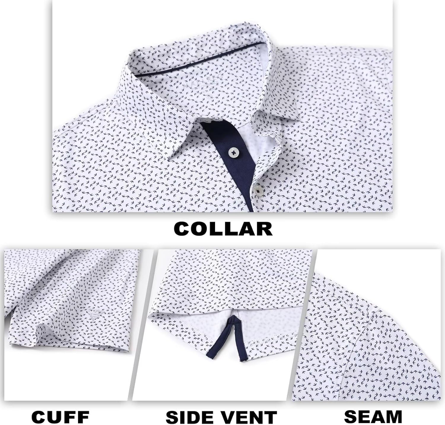 • STYLE FEATURE: Our golf polos for men use performance fabric with exclusive print and keep good shape, contrast button placket adds a stylish touch and modern twist meanwhile giving you a excellent wearing experience.