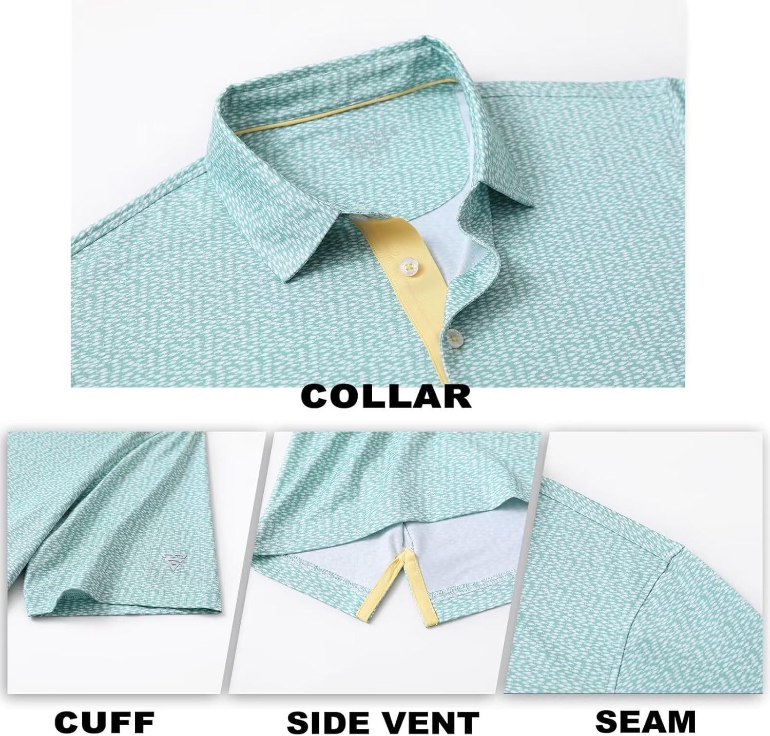 - STYLE FEATURE: Our golf polos for men use performance fabric with exclusive print and keep good shape, contrast button placket adds a stylish touch and modern twist meanwhile giving you a excellent wearing experience.