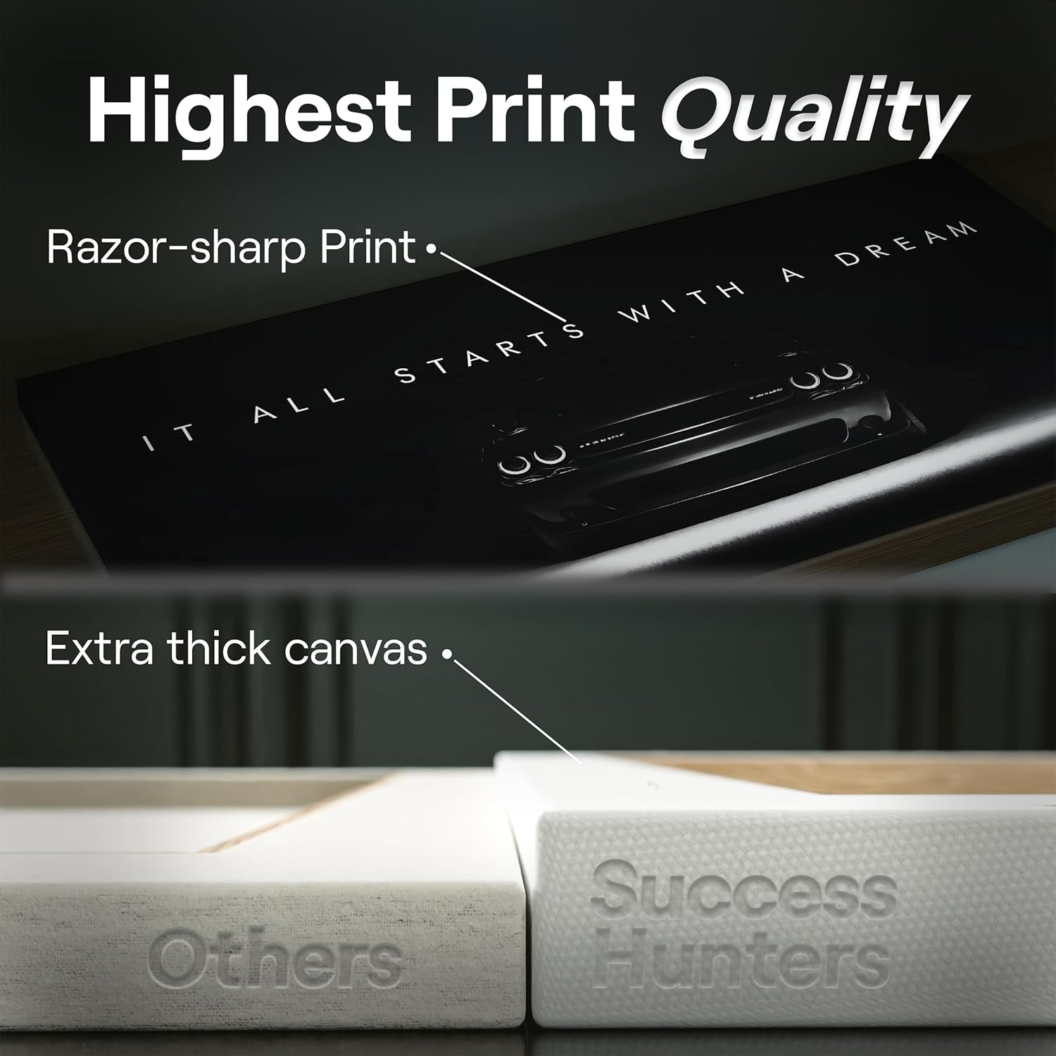 - Lifetime Warranty – Success Hunters Prints are all set and ready to ship these exclusive canvas arts for entrepreneurs straight to you. Remember you get a 100% satisfaction, lifetime warranty, so this decision is Risk-Free! Join our hub of motivated, inspired, successful peeps, and select your canvas art now >>